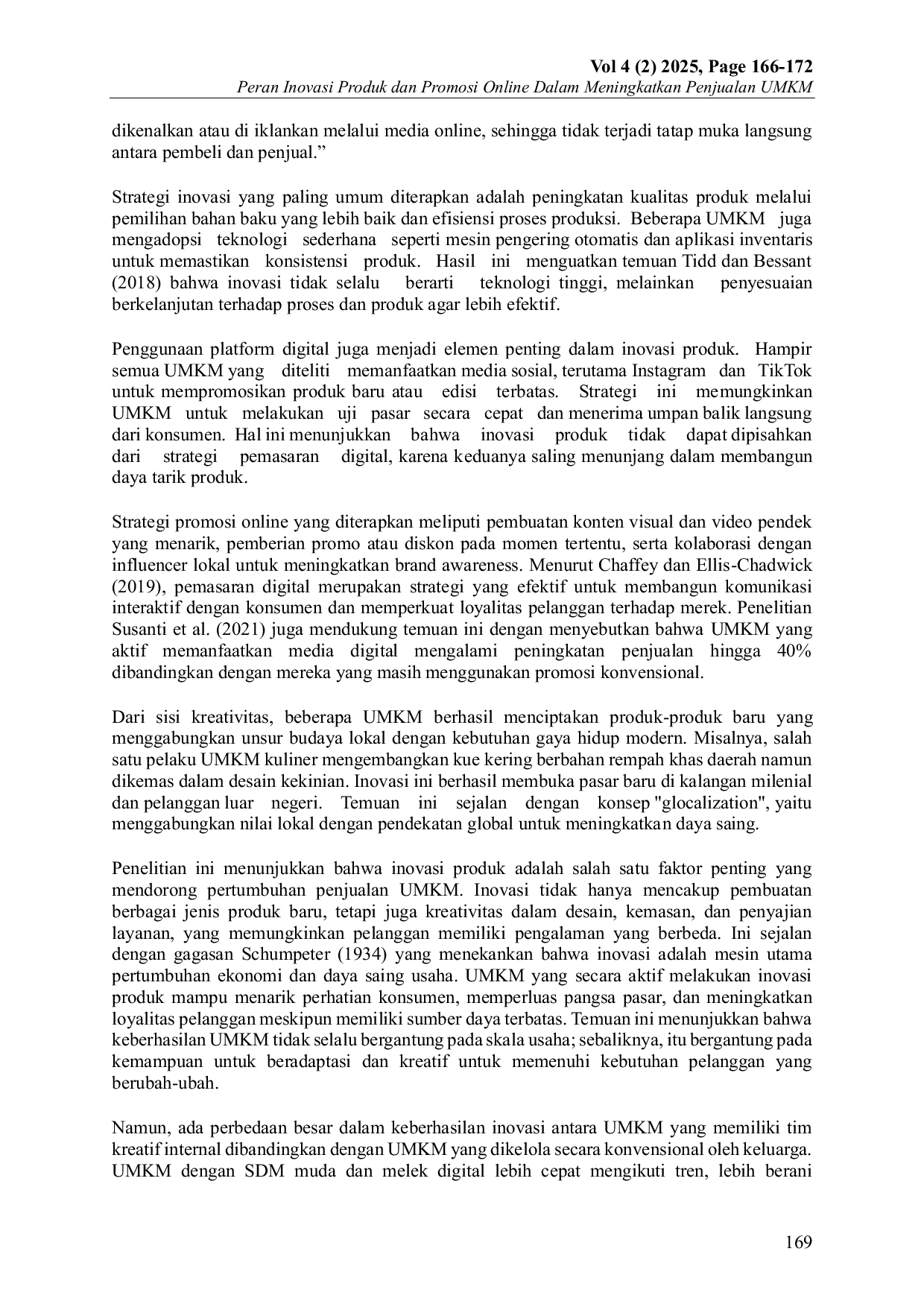 Penelitian lanjutan dapat mengeksplorasi pengaruh jenis media sosial tertentu (seperti Instagram vs TikTok) terhadap efektivitas promosi UMKM. Studi juga bisa membandingkan dampak inovasi produk tradisional versus inovasi berbasis teknologi pada sektor UMKM yang berbeda. Selain itu, penelitian dapat menguji hubungan antara frekuensi promosi digital dengan loyalitas pelanggan, terutama di wilayah pedesaan yang akses digitalnya terbatas.