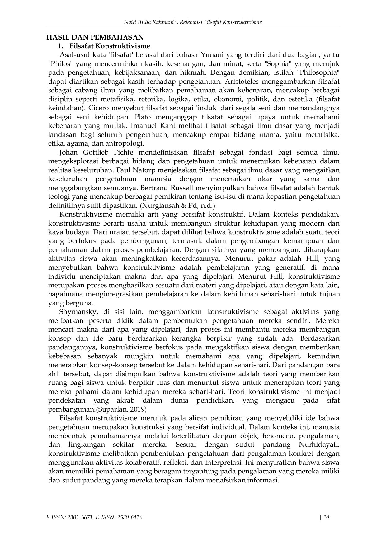 Filsafat konstruktivisme memberikan kontribusi penting dalam pendidikan era digital dengan menekankan peran aktif siswa dalam membangun pengetahuan melalui pengalaman dan refleksi.Teknologi informasi dan komunikasi dapat menjadi sarana pendukung dalam menerapkan prinsip konstruktivisme, memungkinkan akses informasi yang lebih luas dan eksplorasi materi secara mendalam.Kombinasi antara pendekatan humanistik dan konstruktivisme saling melengkapi dalam menghadapi tantangan pendidikan di era digital, dengan memadukan nilai kemanusiaan dan pengembangan pengetahuan kognitif.