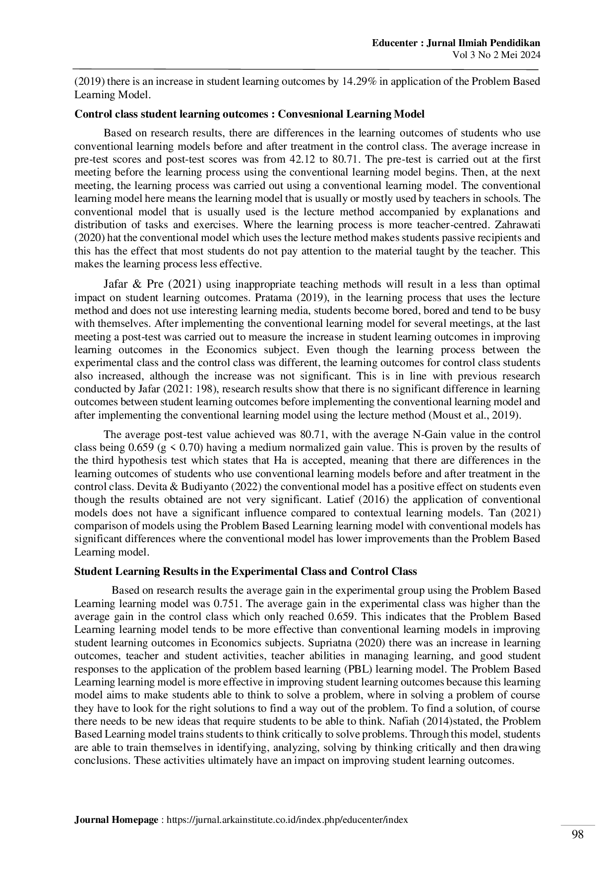 The research demonstrates that students who learn through Problem-Based Learning (PBL) exhibit a deeper understanding of the subject matter compared to those using conventional methods.Specifically, the study found differences in learning outcomes between the experimental class, utilizing PBL, and the control class, employing conventional learning.Furthermore, the implementation of the PBL model significantly improved student learning outcomes in economics courses, suggesting its effectiveness as an alternative to traditional teaching approaches.