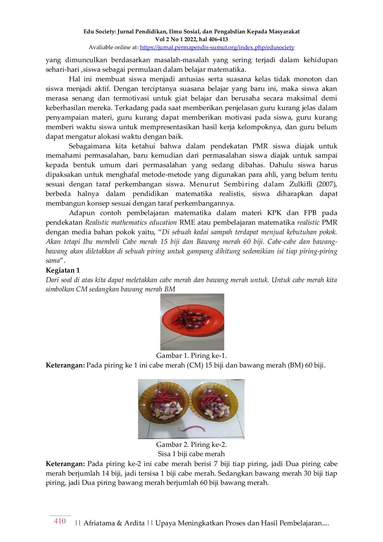 EDU SOCIETY: JURNAL PENDIDIKAN, ILMU SOSIAL DAN PENGABDIAN KEPADA MASYARAKATEDU SOCIETY: JURNAL PENDIDIKAN, ILMU SOSIAL DAN PENGABDIAN KEPADA MASYARAKATArtikel ini bertujuan untuk mengetahui bagaimana pembelajaran Matematika pada Materi KPK dan FPB dengan Pendekatan RME (Realistic Mathematika Education) mengetahui peningkatan hasil belajar matematika siswa menggunakan pendekatan RME pada materi KPK dan FPB. Instrument yang digunakan dalam penelitian ini adalah observasi Langkah-langkah dalam pendekatan RME yaitu: Relating (Mengaitkan), Experience (Mengalami), Applying (Mengaplikasikan), Cooperating (Bekerjasama), dan Transferring. Pada masa ini RME yang mendukung dalam pembelajaran matematika dalam materi KPK dan FPB. Dengan adanya pendekatan ini, siswa diharapkan mampu bersikap aktif dalam sistem atau pendekatan RME dalam proses pembelajaran. Dalam pembelajaran ini, siswa berpikir kreatif, dikarenakan matematika terkhusus pada materi KPK dan FPB bersifat fleksibilitas. Dikarenakan siswa dituntutkan dalam kemauan untuk memodifikasikan kepecayaan dengan mengetahui informasi baru, dan meningkatkan pemahaman siswa pada konsep KPK dan FPB.