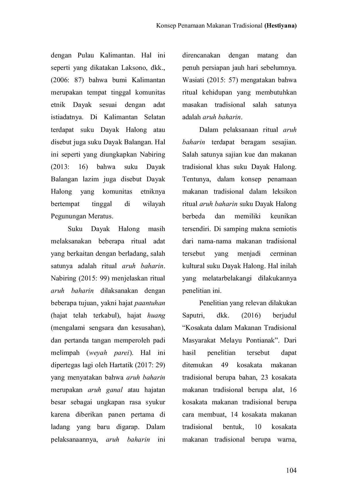 Jurnal BébasanJurnal BébasanPenelitian ini bertujuan mendeskripsikan konsep penamaan makanan tradisional dalam leksikon ritual aruh baharin suku Dayak Halong dan mendeskripsikan makna semiotis makanan tradisional dalam leksikon ritual aruh baharin suku Dayak Halong.