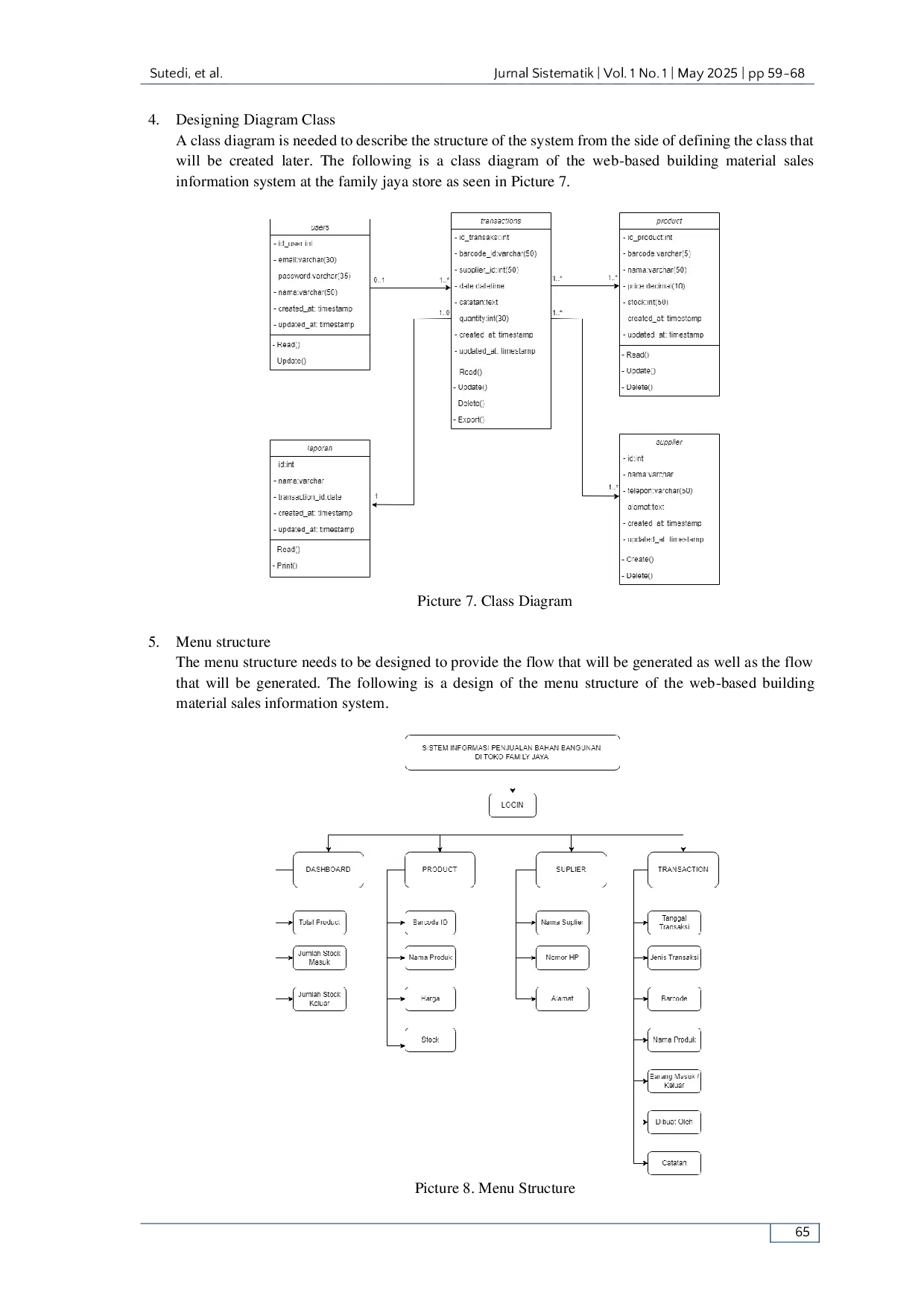 Jurnal SistematikJurnal SistematikToko Family Jaya is a store that supplies building materials located in the Cibatu area, such as paints, ceramics, tiles, and others. With the soaring development of information technology that is currently affecting various sectors, including the business of selling building materials, the management at the Family Jaya store is still manual, which results in the risk of recording errors and inaccurate reports, including recording the entry of goods, the expenditure of goods, and the stock of goods. This research aims to design, build, and implement a sales information system to improve the efficiency of data recording and report making at Family Jaya Building Shop. The method used is the Rational Unified Process (RUP) which consists of several stages, namely Inception, Elaboration, Construction, and Transaction. The result of this research is a web-based sales information system that makes it easier for store owners to manage store data reports. This system is expected to increase efficiency and accuracy in supporting business processes at Toko Family Jaya.