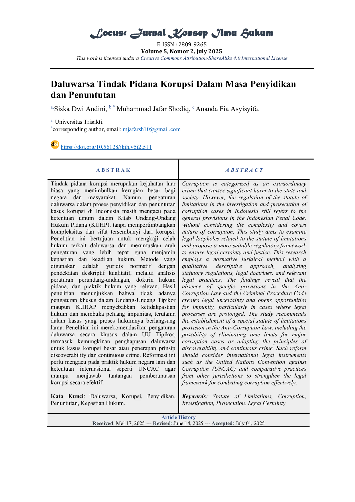 Some journal file may contain phone numbers, email addresses, linked social media accounts, and/or external link to another website or platform. You (visitor) may use these informations to gain further details about the documents presented in juris.id.