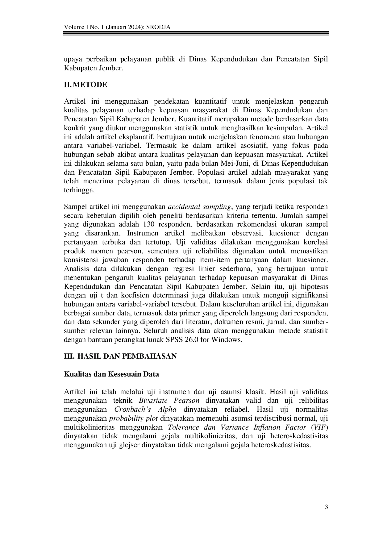 UMSJUMSJ Metode non-probability sampling digunakan untuk memilih 130 responden dari masyarakat yang telah menggunakan layanan tersebut. Data primer dikumpulkanMetode non-probability sampling digunakan untuk memilih 130 responden dari masyarakat yang telah menggunakan layanan tersebut. Data primer dikumpulkan