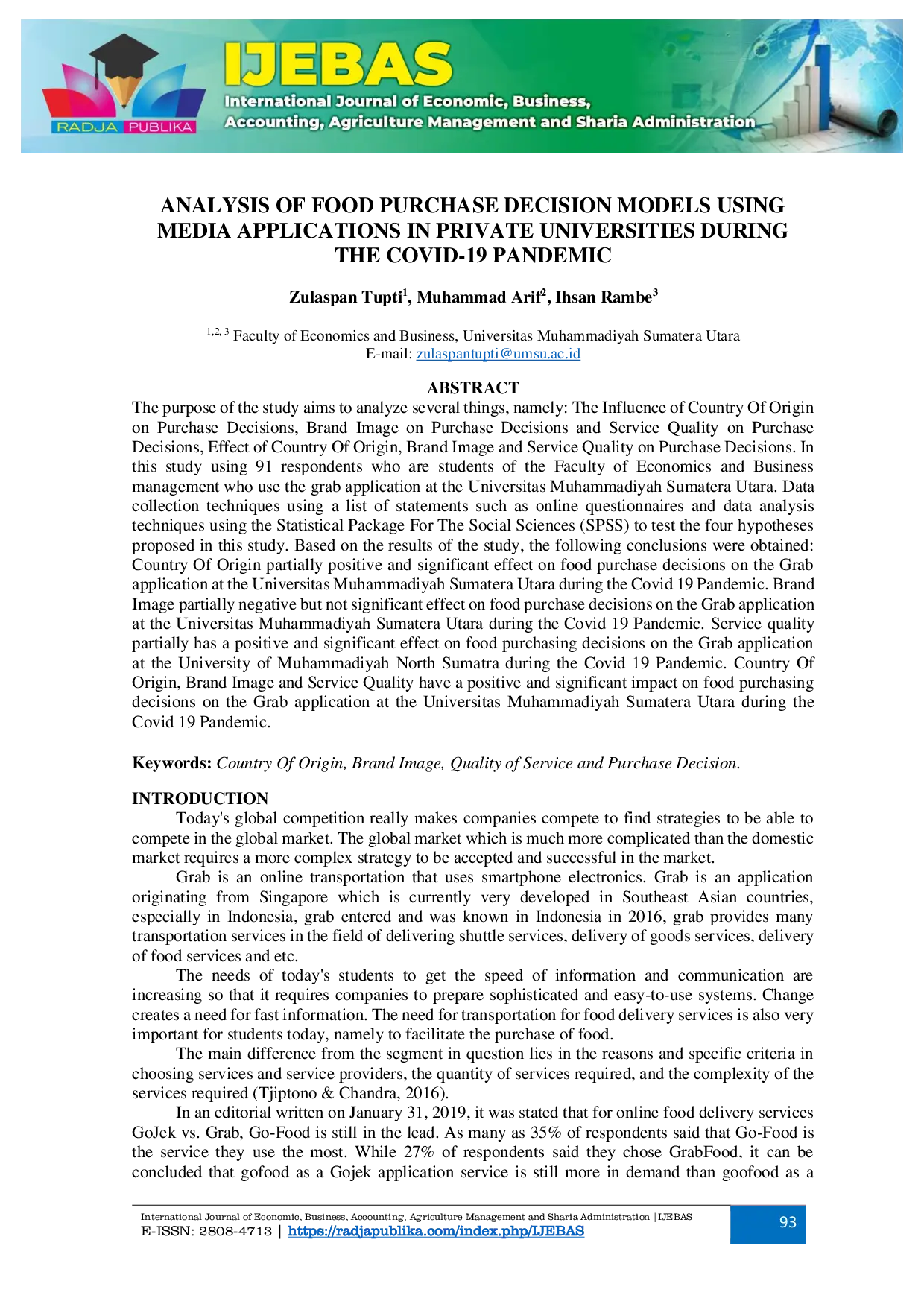 RADJAPUBLIKARADJAPUBLIKA Penelitian ini menganalisis pengaruh Country of Origin, Brand Image, dan Kualitas Layanan terhadap Keputusan Pembelian makanan melalui aplikasi Grab padaPenelitian ini menganalisis pengaruh Country of Origin, Brand Image, dan Kualitas Layanan terhadap Keputusan Pembelian makanan melalui aplikasi Grab pada