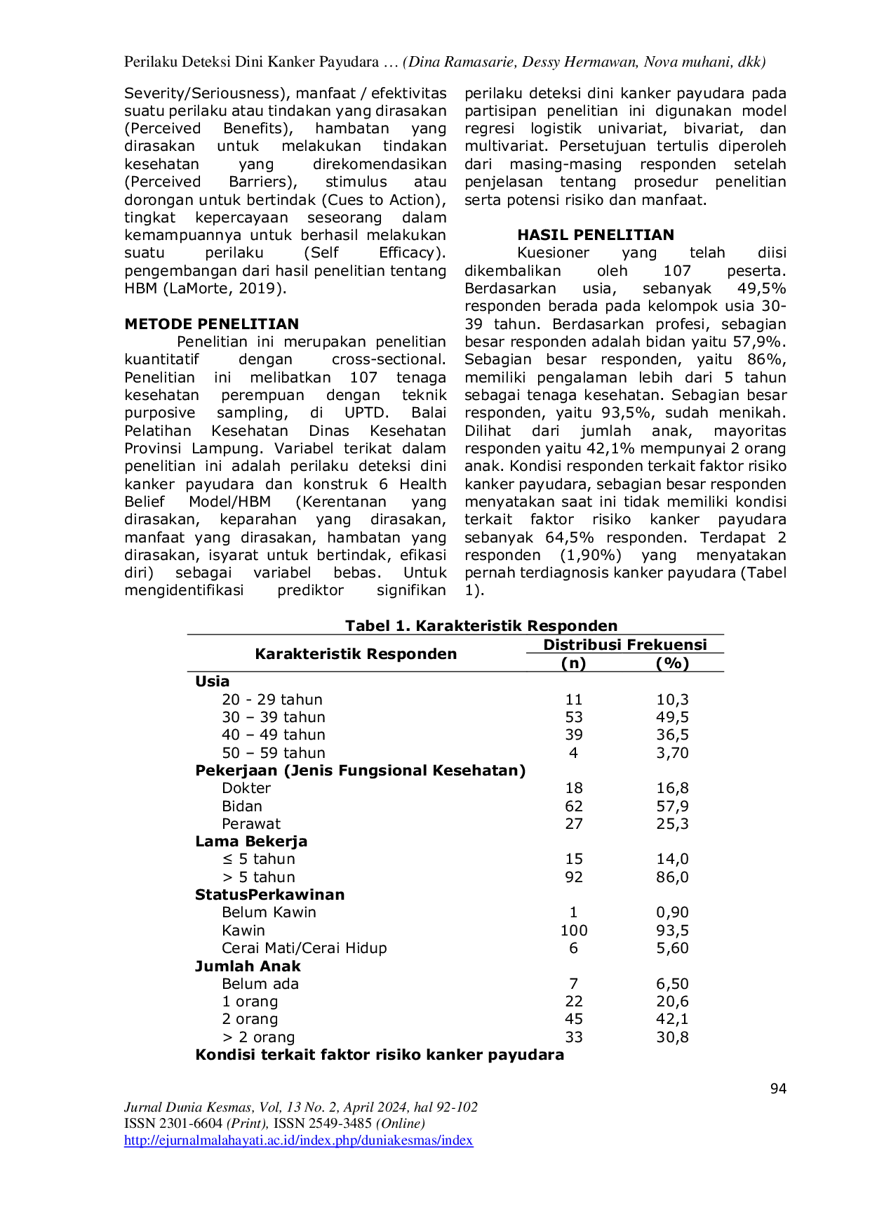 MALAHAYATIMALAHAYATI Variabel terikat dalam penelitian ini adalah perilaku deteksi dini kanker payudara dan konstruk 6 Health Belief Model/HBM (Kerentanan yang dirasakan, keparahanVariabel terikat dalam penelitian ini adalah perilaku deteksi dini kanker payudara dan konstruk 6 Health Belief Model/HBM (Kerentanan yang dirasakan, keparahan