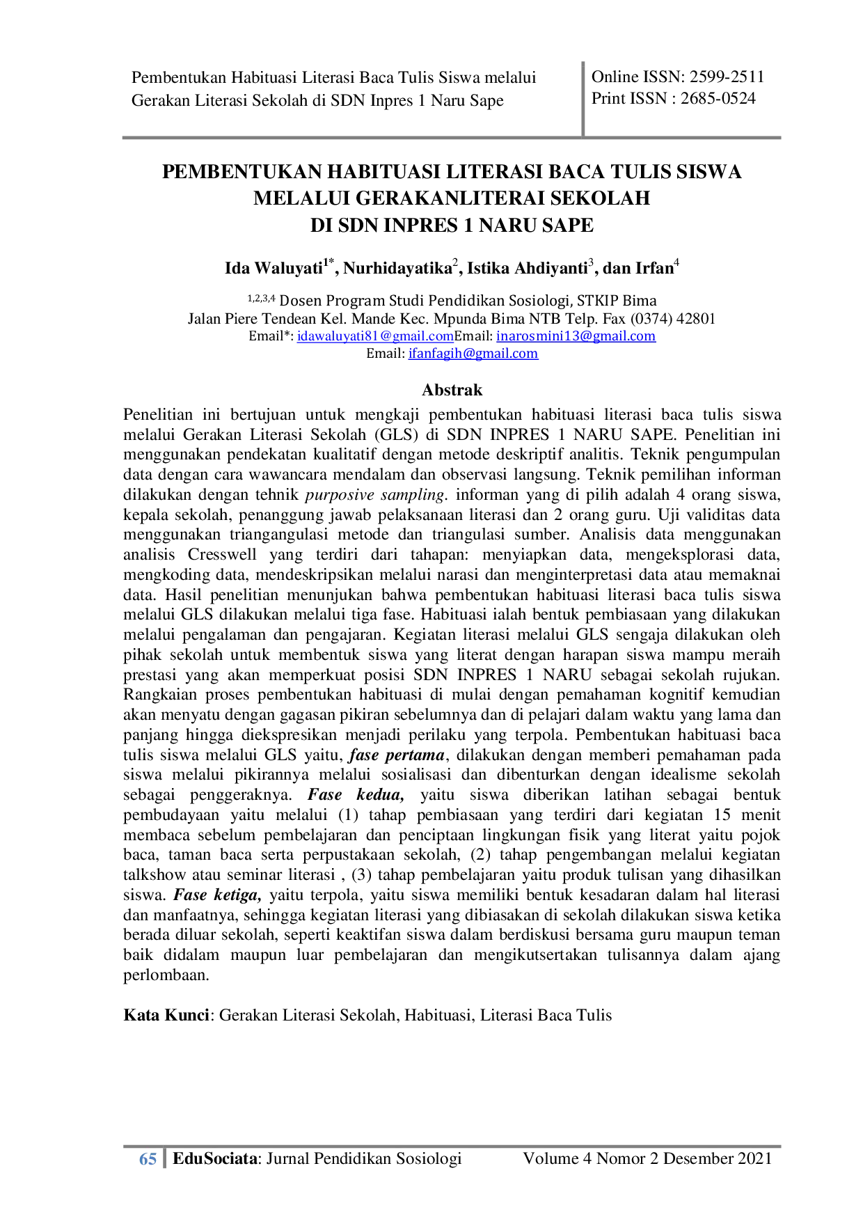 STKIP BIMASTKIP BIMA Informan yang dipilih adalah 4 orang siswa, kepala sekolah, penanggung jawab pelaksanaan literasi dan 2 orang guru. Uji validitas data menggunakan triangangulasiInforman yang dipilih adalah 4 orang siswa, kepala sekolah, penanggung jawab pelaksanaan literasi dan 2 orang guru. Uji validitas data menggunakan triangangulasi