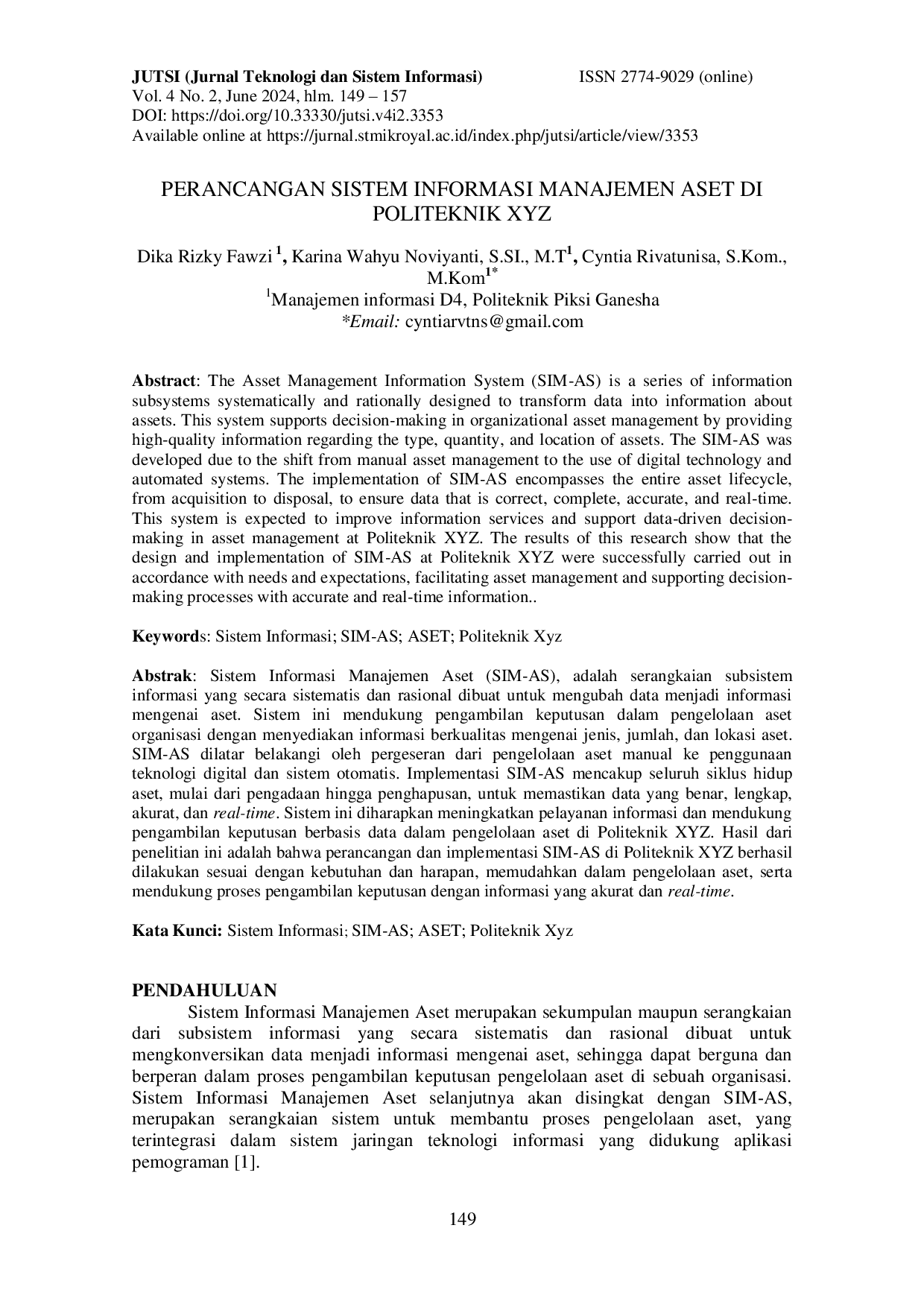 STMIK ROYALSTMIK ROYAL Sistem Informasi Manajemen Aset (SIM-AS), adalah serangkaian subsistem informasi yang secara sistematis dan rasional dibuat untuk mengubah data menjadiSistem Informasi Manajemen Aset (SIM-AS), adalah serangkaian subsistem informasi yang secara sistematis dan rasional dibuat untuk mengubah data menjadi