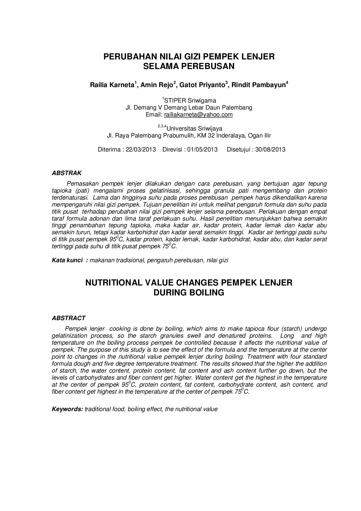 SUMSELPROVSUMSELPROV Pengaruh perebusan pada formula yang berbeda menyebabkan perubahan yang signifikan pada kadar air, protein, lemak, karbohidrat, abu, dan serat pempek.Pengaruh perebusan pada formula yang berbeda menyebabkan perubahan yang signifikan pada kadar air, protein, lemak, karbohidrat, abu, dan serat pempek.