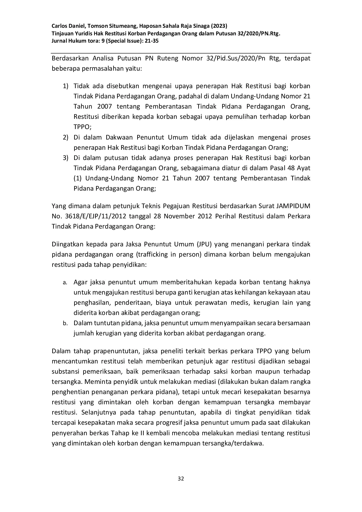 FHUKIFHUKI Oleh karena itu, diharapkan para penegak hukum dapat lebih proaktif dalam menginformasikan dan memfasilitasi hak restitusi bagi para korban tindak pidanaOleh karena itu, diharapkan para penegak hukum dapat lebih proaktif dalam menginformasikan dan memfasilitasi hak restitusi bagi para korban tindak pidana