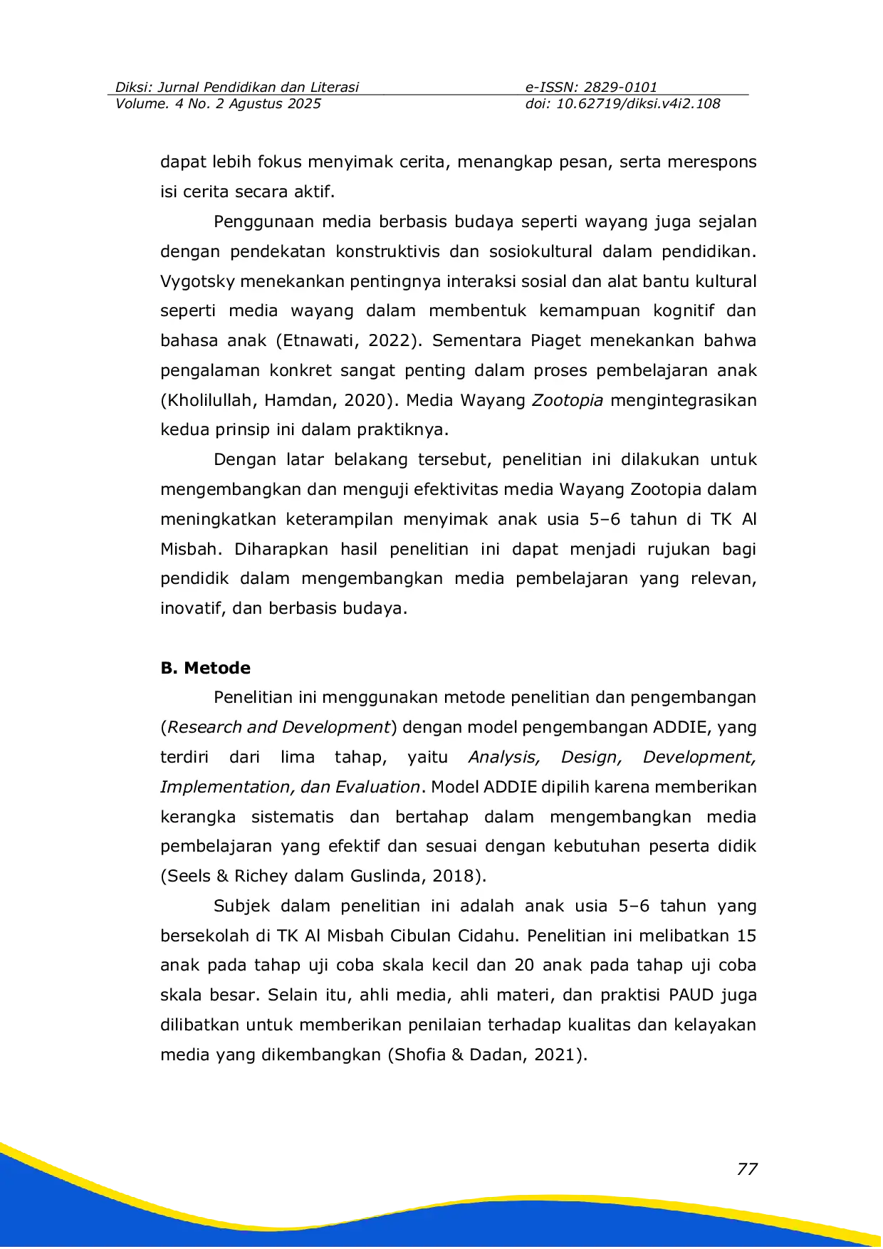 MULYALITERASIMULYALITERASI Penelitian ini menyimpulkan bahwa media Wayang Zootopia yang dikembangkan melalui model ADDIE terbukti sangat layak digunakan berdasarkan hasil validasiPenelitian ini menyimpulkan bahwa media Wayang Zootopia yang dikembangkan melalui model ADDIE terbukti sangat layak digunakan berdasarkan hasil validasi