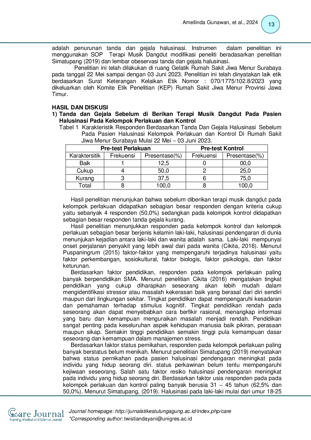 JURNALSTIKESTULUNGAGUNGJURNALSTIKESTULUNGAGUNG Penelitian ini bertujuan menjelaskan pengaruh terapi musik dangdut terhadap penurunan tanda dan gejala halusinasi pendengaran. Rancangan Pra-EksperimentalPenelitian ini bertujuan menjelaskan pengaruh terapi musik dangdut terhadap penurunan tanda dan gejala halusinasi pendengaran. Rancangan Pra-Eksperimental