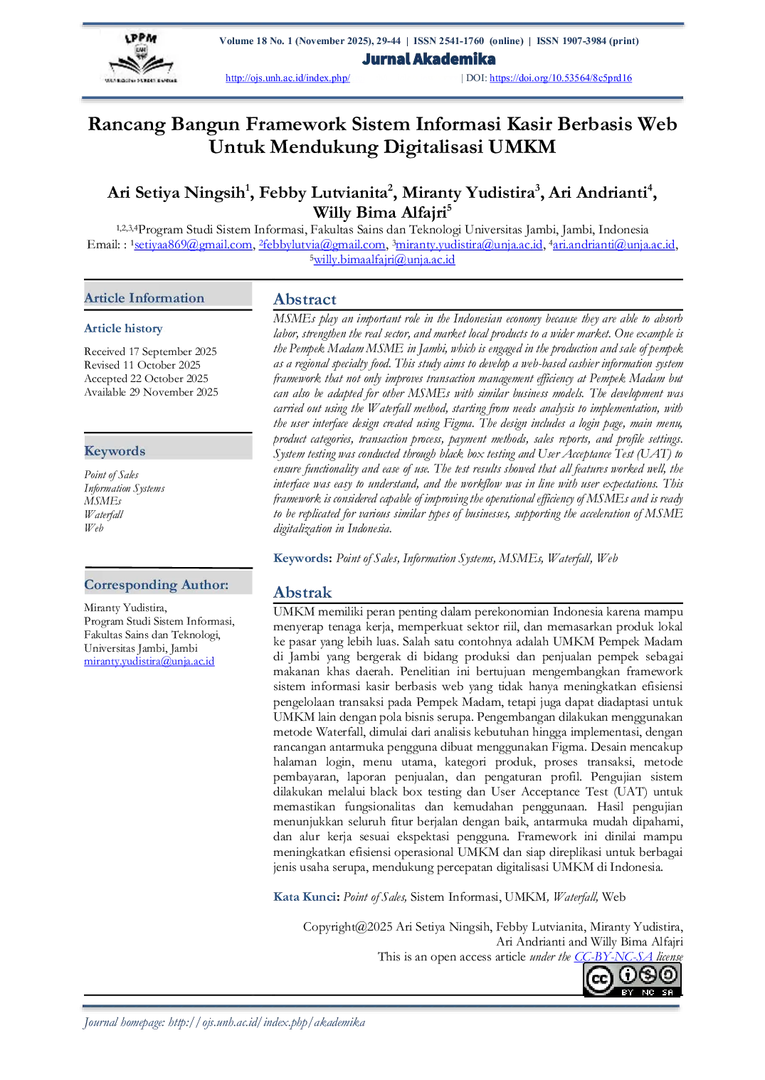 UNHUNH Pengembangan dilakukan menggunakan metode Waterfall, dimulai dari analisis kebutuhan hingga implementasi, dengan rancangan antarmuka pengguna dibuat menggunakanPengembangan dilakukan menggunakan metode Waterfall, dimulai dari analisis kebutuhan hingga implementasi, dengan rancangan antarmuka pengguna dibuat menggunakan