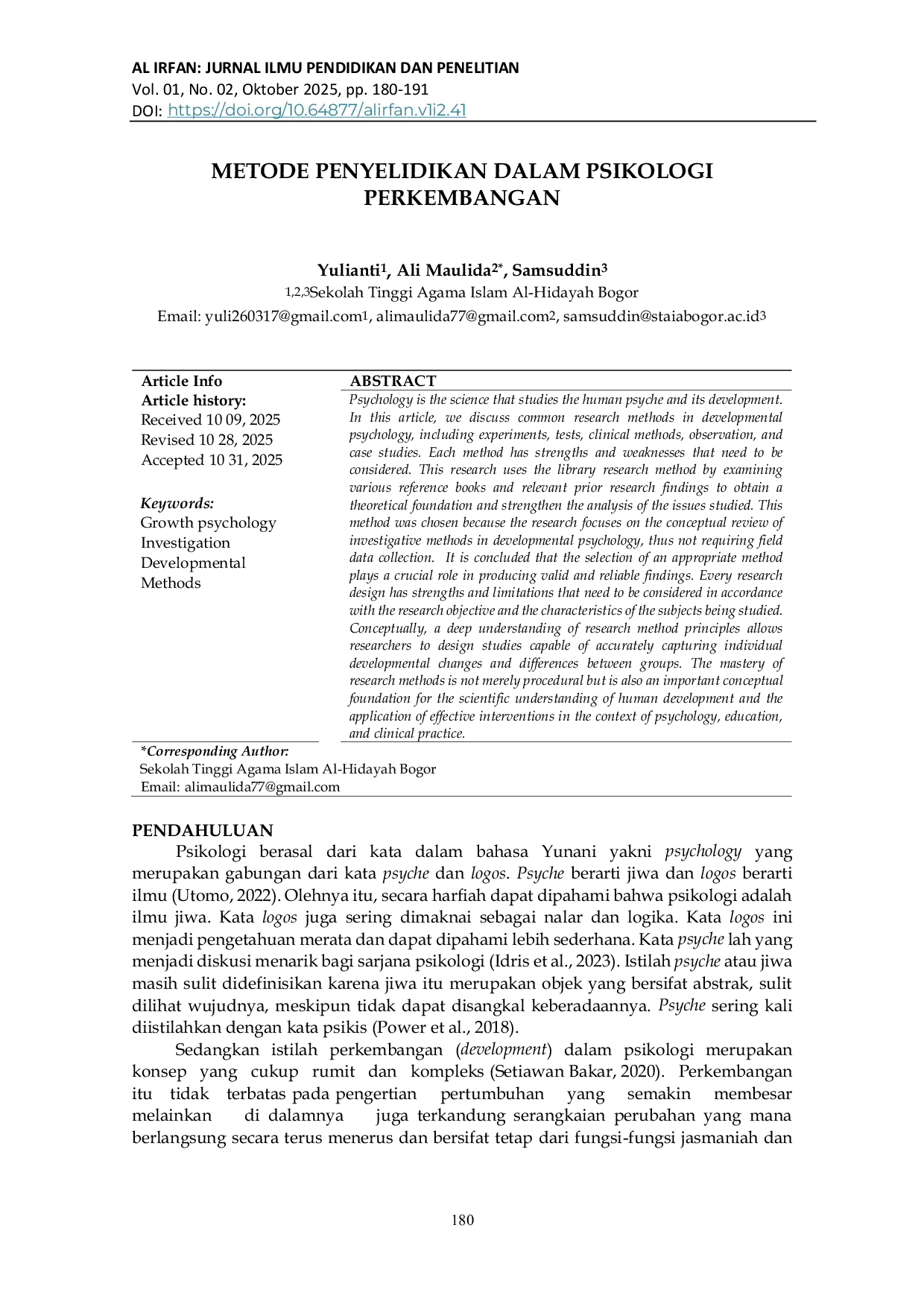 SGTSGT Dalam artikel ini, dibahas metode penelitian umum dalam psikologi perkembangan, seperti eksperimen, tes, metode klinis, observasi, dan studi kasus. SetiapDalam artikel ini, dibahas metode penelitian umum dalam psikologi perkembangan, seperti eksperimen, tes, metode klinis, observasi, dan studi kasus. Setiap