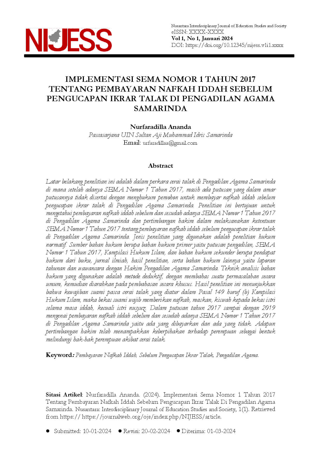 JOURNALWEBJOURNALWEB Latar belakang penelitian ini adalah dalam perkara cerai talak di Pengadilan Agama Samarinda di mana setelah adanya SEMA Nomor 1 Tahun 2017, masih adaLatar belakang penelitian ini adalah dalam perkara cerai talak di Pengadilan Agama Samarinda di mana setelah adanya SEMA Nomor 1 Tahun 2017, masih ada