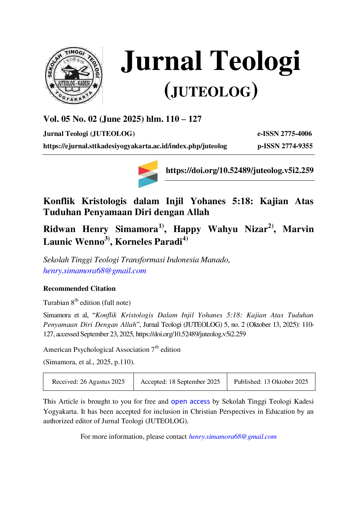 STT KADESISTT KADESI Ayat ini menandai transisi dari konflik seputar hukum Sabat menuju konflik teologis yang lebih mendalam tentang identitas Yesus. 18 memperlihatkan bahwaAyat ini menandai transisi dari konflik seputar hukum Sabat menuju konflik teologis yang lebih mendalam tentang identitas Yesus. 18 memperlihatkan bahwa