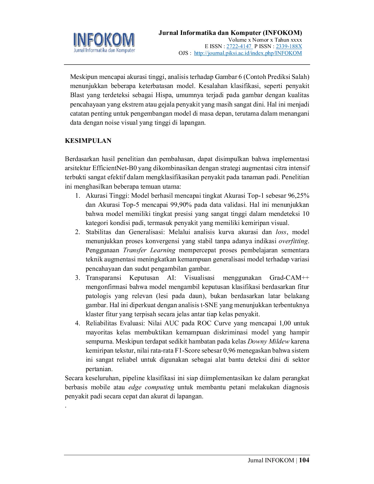 PIKSIPIKSI Dengan nilai AUC hampir 1,0 dan F1‑Score rata-rata 0,96, pipeline ini siap diintegrasikan ke perangkat mobile atau edge computing untuk membantu petaniDengan nilai AUC hampir 1,0 dan F1‑Score rata-rata 0,96, pipeline ini siap diintegrasikan ke perangkat mobile atau edge computing untuk membantu petani