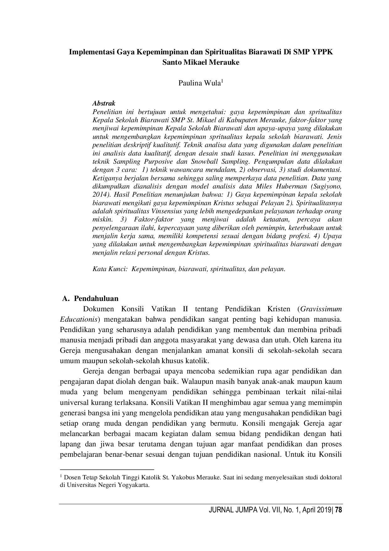 STKYAKOBUSSTKYAKOBUS Data dianalisis dengan model Miles‑Huberman. Hasil penelitian menunjukkan bahwa (1) gaya kepemimpinan kepala sekolah biarawati mengikuti gaya kepemimpinanData dianalisis dengan model Miles‑Huberman. Hasil penelitian menunjukkan bahwa (1) gaya kepemimpinan kepala sekolah biarawati mengikuti gaya kepemimpinan