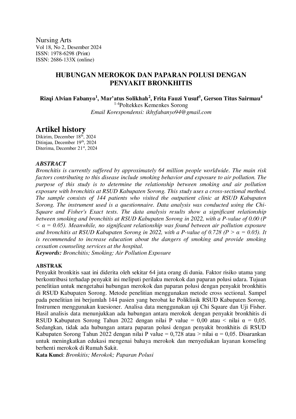 POLTEKKES SORONGPOLTEKKES SORONG Penyakit bronkitis saat ini diderita oleh sekitar 64 juta orang di dunia. Faktor risiko utama yang berkontribusi terhadap penyakit ini meliputi perilakuPenyakit bronkitis saat ini diderita oleh sekitar 64 juta orang di dunia. Faktor risiko utama yang berkontribusi terhadap penyakit ini meliputi perilaku
