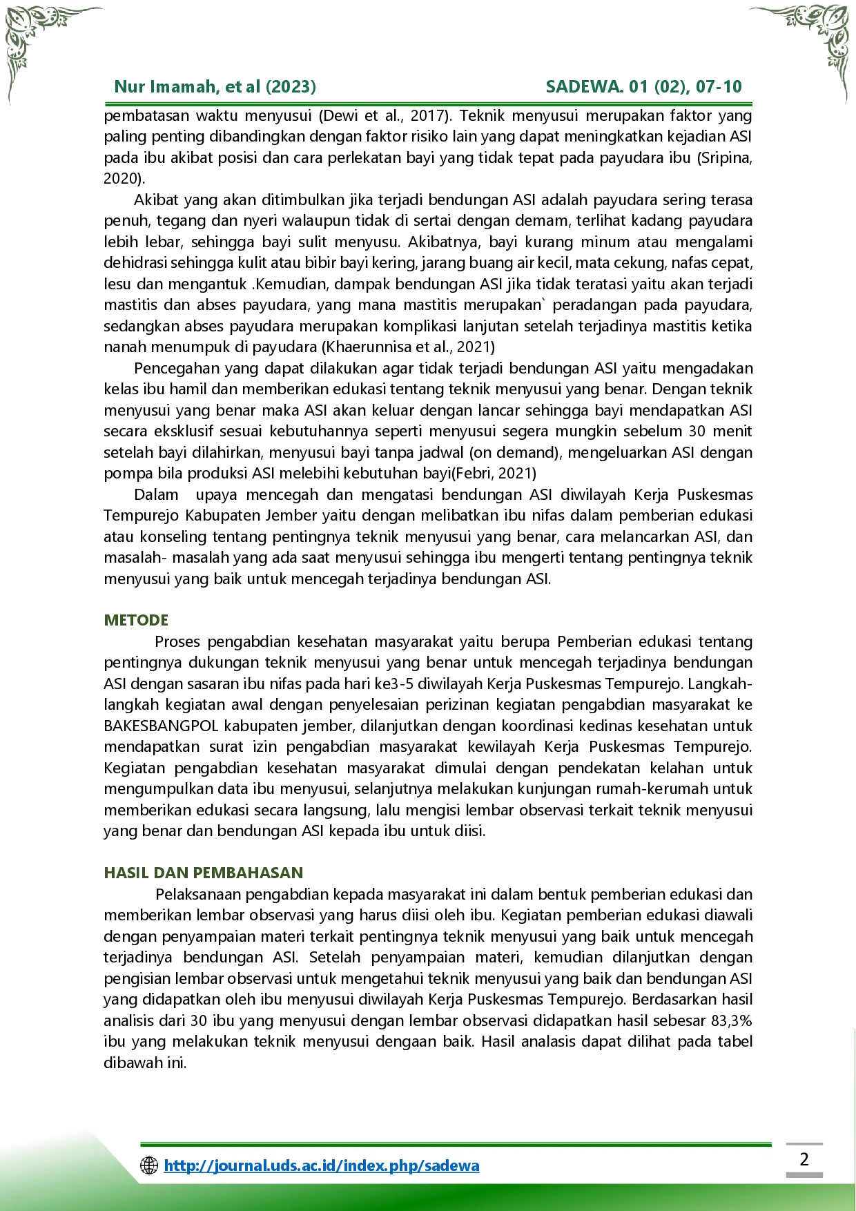 UDSUDS Hasil konseling menunjukkan dampak positif, di mana ibu nifas memperoleh pengetahuan tentang teknik menyusui yang benar untuk mencegah dan mengatasi bendunganHasil konseling menunjukkan dampak positif, di mana ibu nifas memperoleh pengetahuan tentang teknik menyusui yang benar untuk mencegah dan mengatasi bendungan