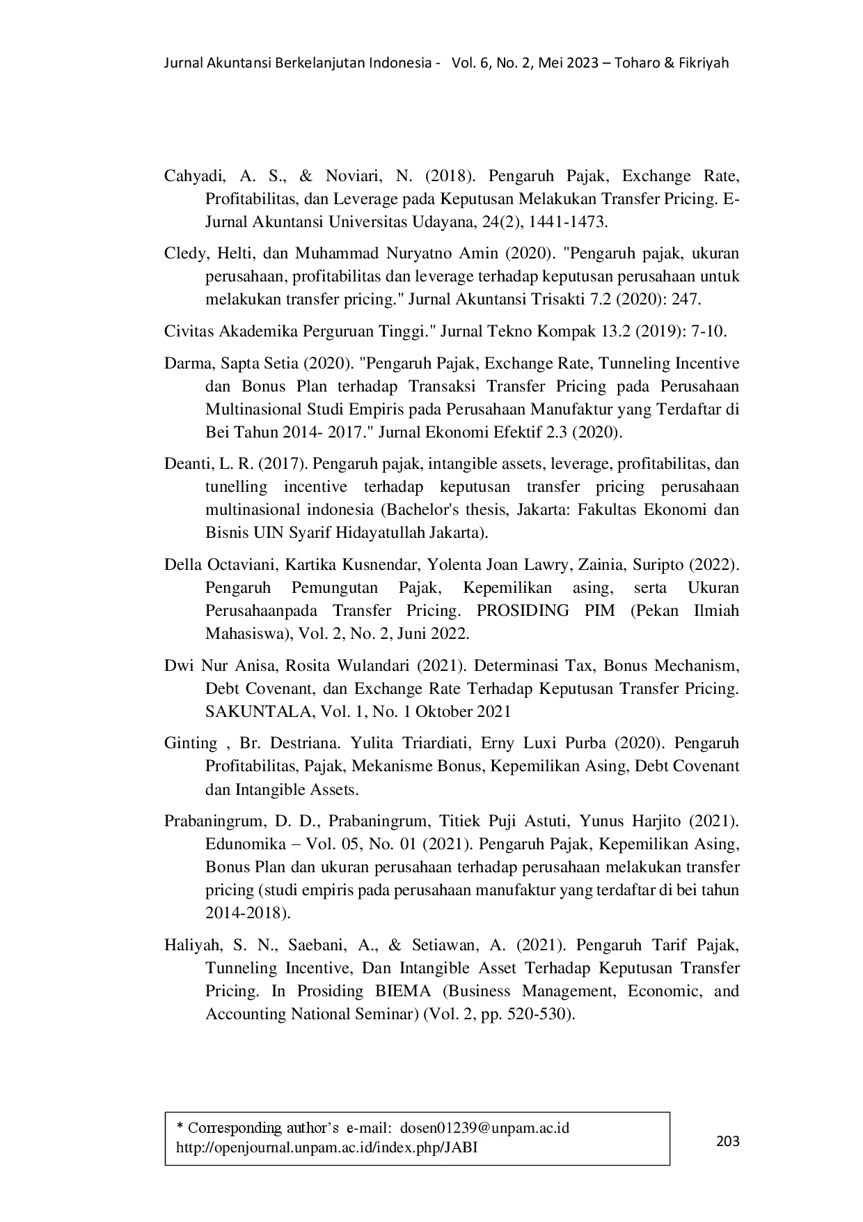 UNPAMUNPAM Hasil dari penelitian ini secara simultan menyatakan bahwa Tax minimization, Foreign ownership dan Bonus Plan berpengaruh terhadap Transfer Pricing. TaxHasil dari penelitian ini secara simultan menyatakan bahwa Tax minimization, Foreign ownership dan Bonus Plan berpengaruh terhadap Transfer Pricing. Tax