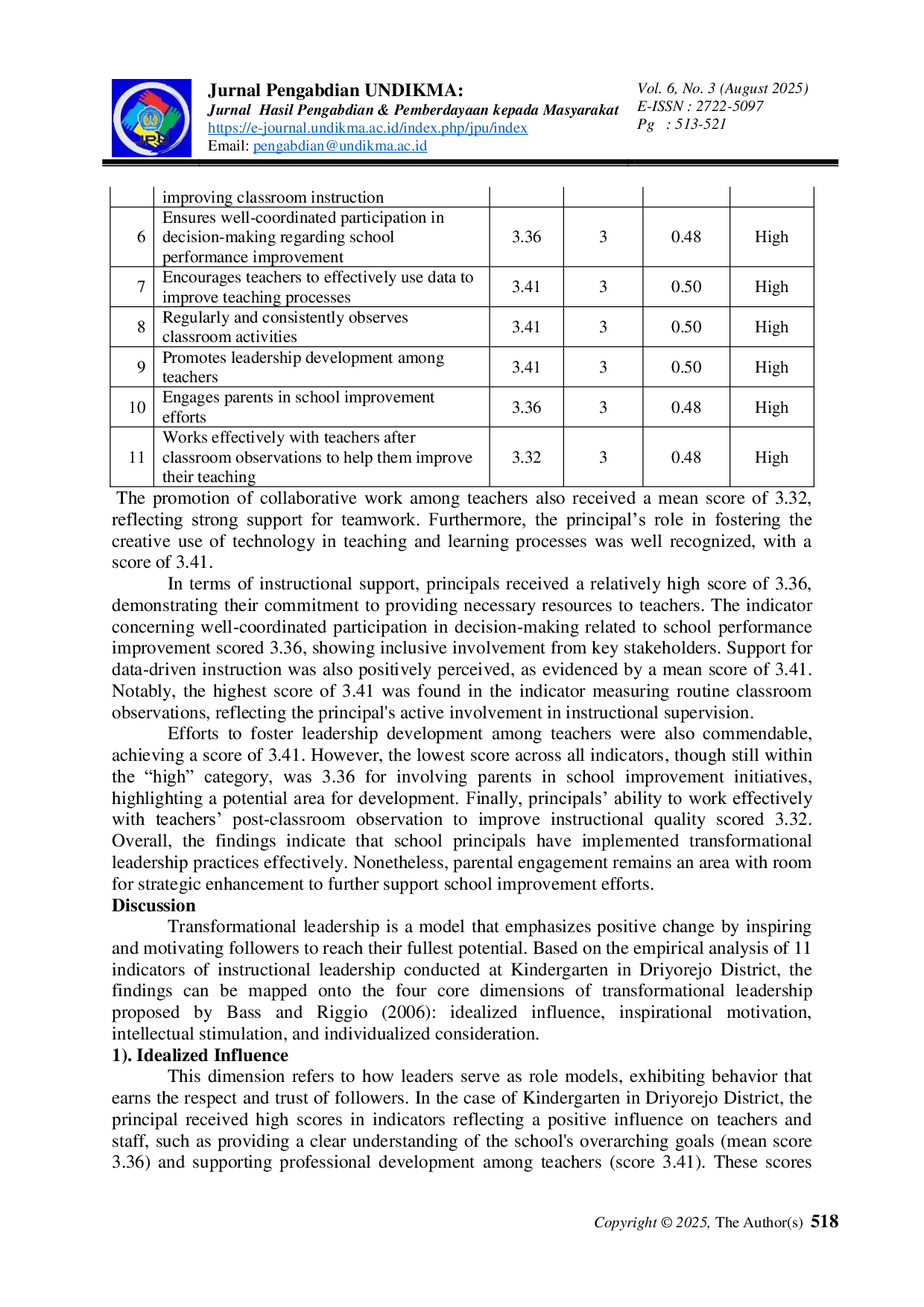 UNDIKMAUNDIKMA Evaluasi dilakukan melalui kuesioner Likert 5-poin yang mengukur dimensi idealized influence, inspirational motivation, intellectual stimulation, dan individualizedEvaluasi dilakukan melalui kuesioner Likert 5-poin yang mengukur dimensi idealized influence, inspirational motivation, intellectual stimulation, dan individualized