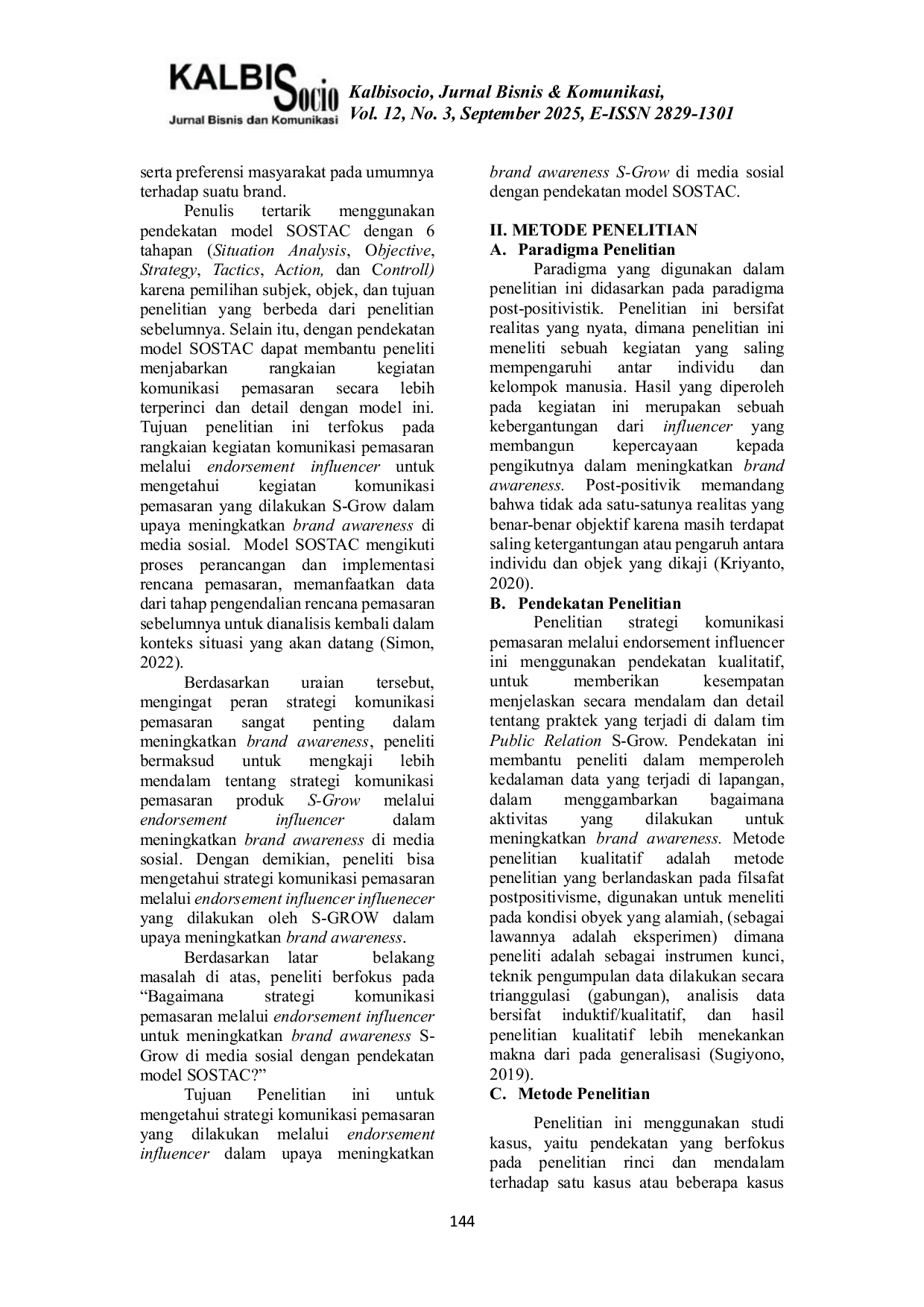 KALBISKALBIS Keberhasilan implementasi strategi komunikasi pemasaran dapat meningkatkan brand awareness perusahaan. S-Grow memperoleh jangkauan audiens yang banyakKeberhasilan implementasi strategi komunikasi pemasaran dapat meningkatkan brand awareness perusahaan. S-Grow memperoleh jangkauan audiens yang banyak