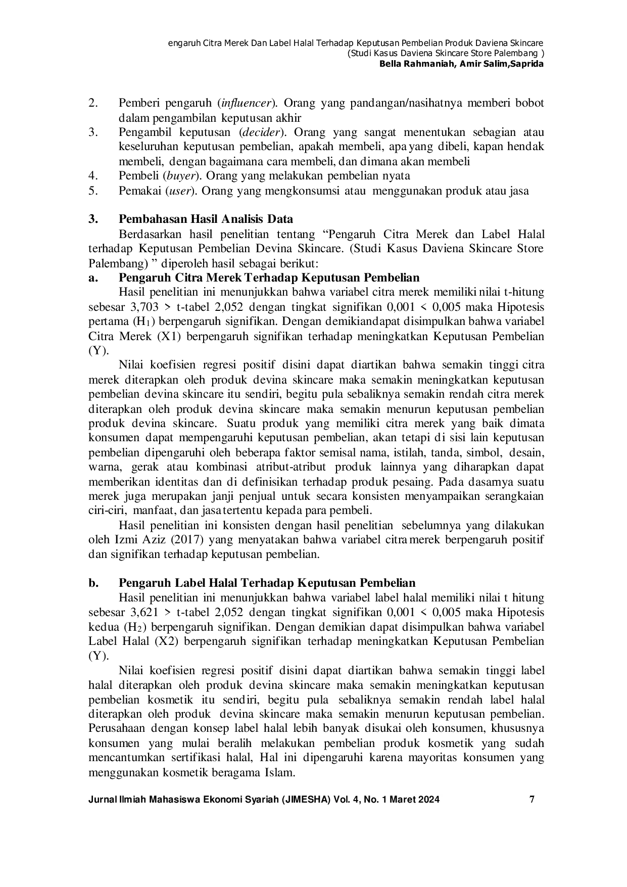 STEBIS IGMSTEBIS IGM Hal ini dapat dilihat dari nilai Citra Merek dengan t hitung > t tabel, Label halal dengan t hitung > t tabel, dengan demikian citra merek dan label halalHal ini dapat dilihat dari nilai Citra Merek dengan t hitung > t tabel, Label halal dengan t hitung > t tabel, dengan demikian citra merek dan label halal