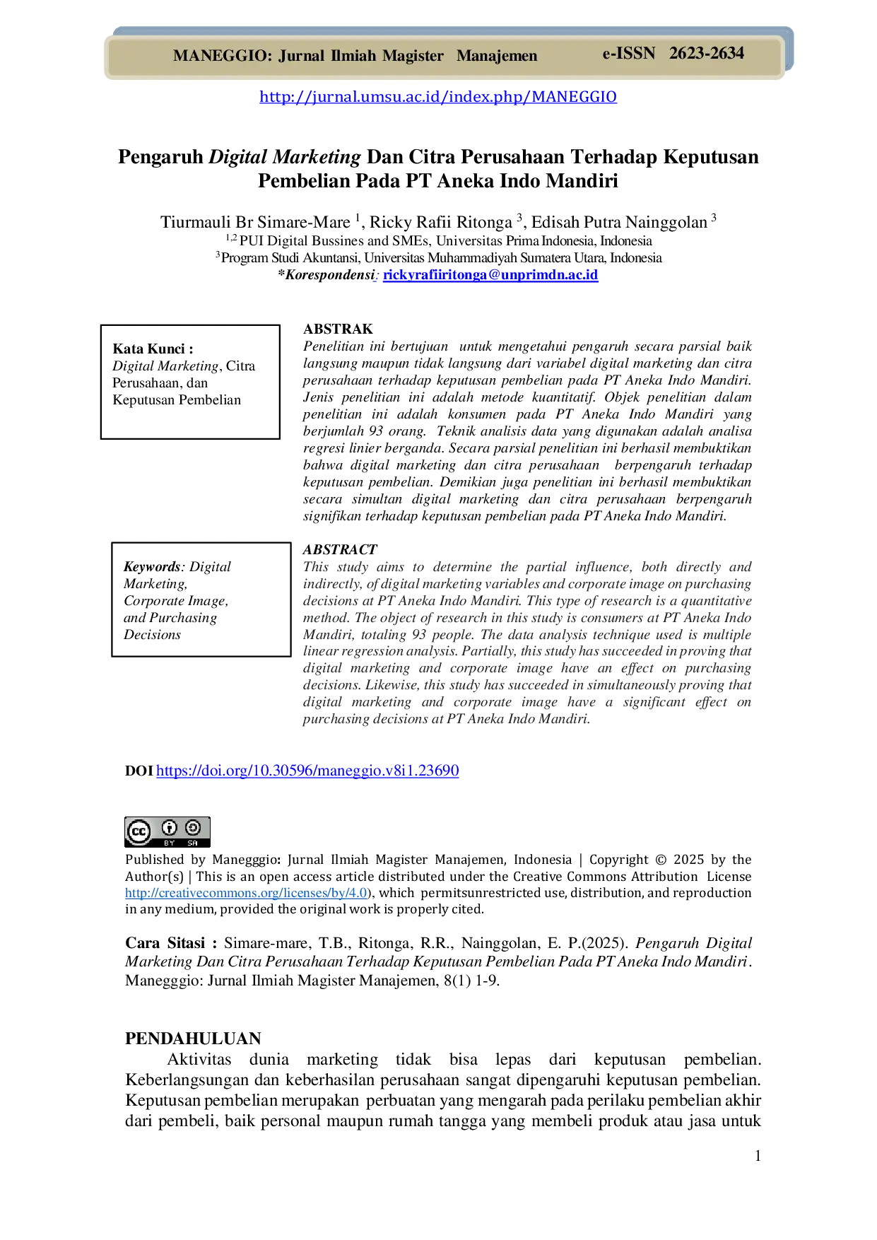 UMSUUMSU Objek penelitian dalam penelitian ini adalah konsumen pada PT Aneka Indo Mandiri yang berjumlah 93 orang. Teknik analisis data yang digunakan adalah analisaObjek penelitian dalam penelitian ini adalah konsumen pada PT Aneka Indo Mandiri yang berjumlah 93 orang. Teknik analisis data yang digunakan adalah analisa