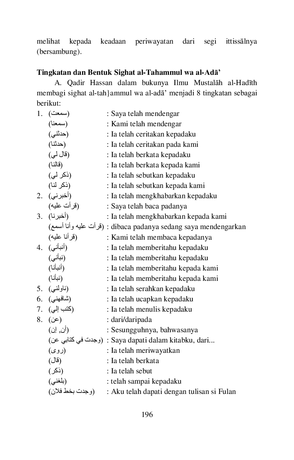LP3MZHLP3MZH Akan tetapi, penentuan layak atau tidaknya sebuah hadis untuk dijadikan hujjah (amalan) berkaitan dengan matan, perawi dan sanad. Tahammul wa al-Ada merupakanAkan tetapi, penentuan layak atau tidaknya sebuah hadis untuk dijadikan hujjah (amalan) berkaitan dengan matan, perawi dan sanad. Tahammul wa al-Ada merupakan