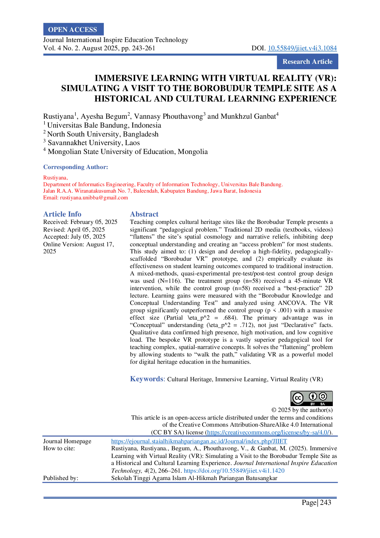STAIALHIKMAHPARIANGANSTAIALHIKMAHPARIANGAN Kenaikan pembelajaran diukur dengan Borobudur Knowledge and Conceptual Understanding Test dan dianalisis menggunakan ANCOVA. Kelompok VR secara signifikanKenaikan pembelajaran diukur dengan Borobudur Knowledge and Conceptual Understanding Test dan dianalisis menggunakan ANCOVA. Kelompok VR secara signifikan