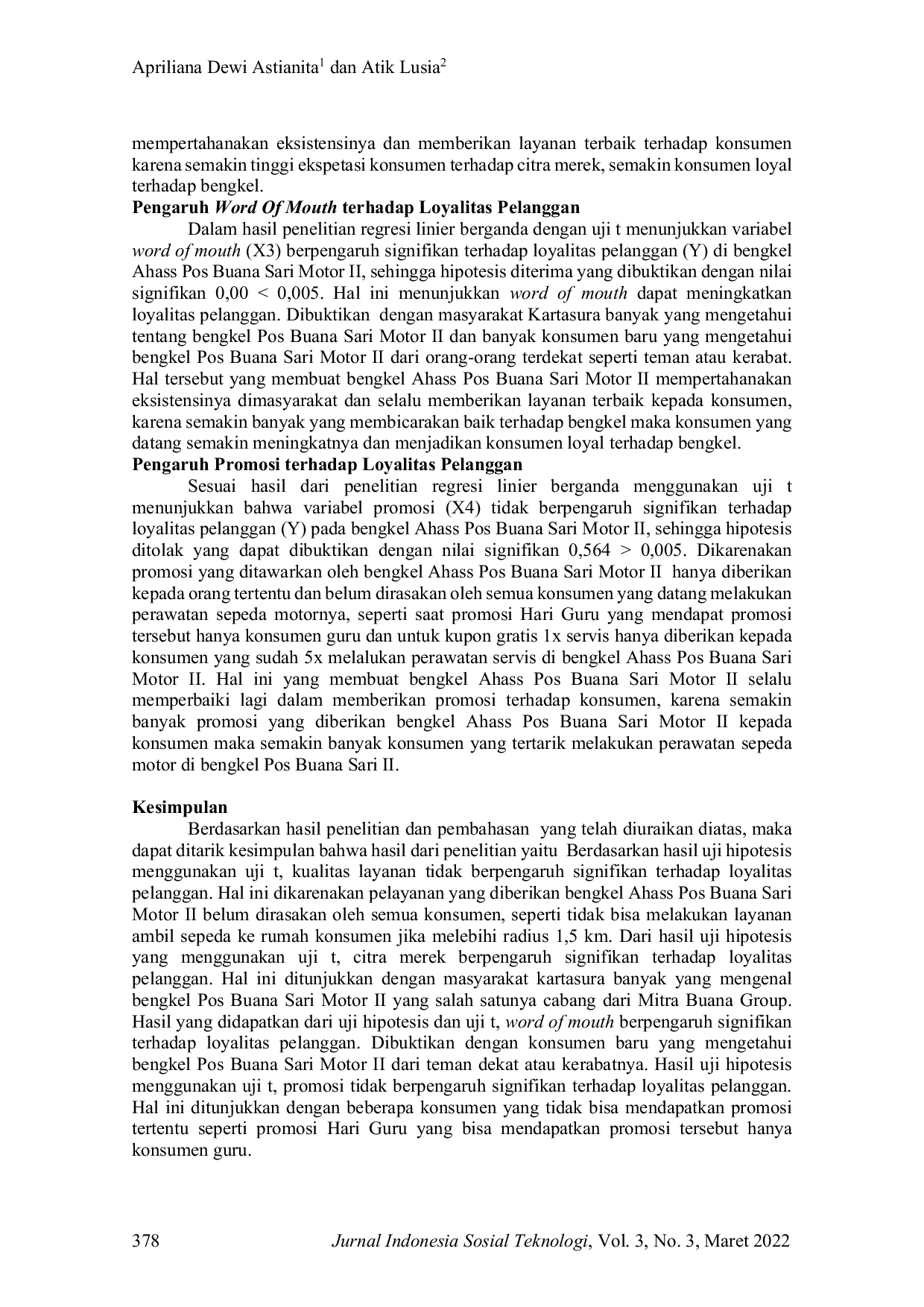 PUBLIKASIINDONESIAPUBLIKASIINDONESIA Berdasarkan hasil penelitian sebaiknya bengkel Ahass Pos Buana Sari Motor II lebih meningkatkan kualitas layanan, promosi dan selalu menjaga hubungan baikBerdasarkan hasil penelitian sebaiknya bengkel Ahass Pos Buana Sari Motor II lebih meningkatkan kualitas layanan, promosi dan selalu menjaga hubungan baik