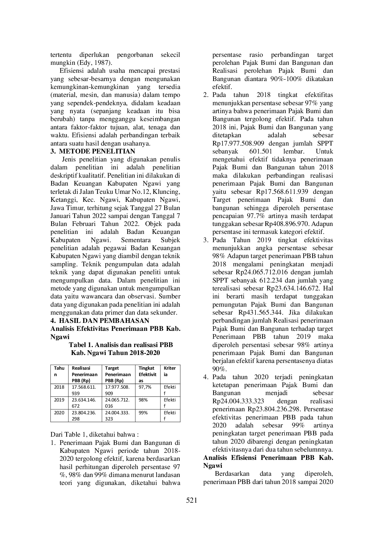 STIE MUTTAQIENSTIE MUTTAQIEN Hasil ini menunjukkan bahwa efektivitas dan efisiensi pemungutan PBB memiliki dampak positif terhadap potensi PAD Kabupaten Ngawi. Tingkat efektivitasHasil ini menunjukkan bahwa efektivitas dan efisiensi pemungutan PBB memiliki dampak positif terhadap potensi PAD Kabupaten Ngawi. Tingkat efektivitas