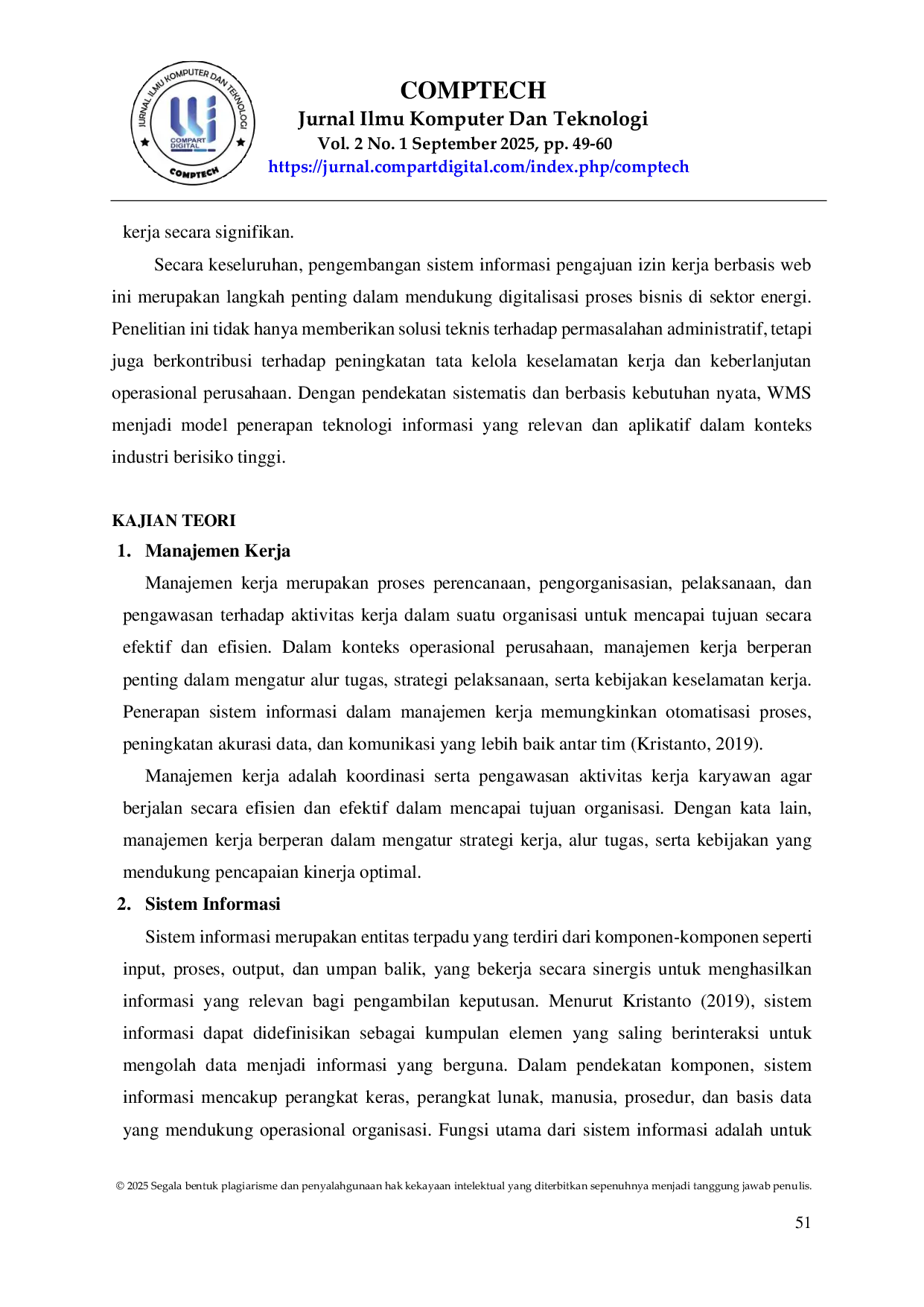 COMPARTDIGITALCOMPARTDIGITAL Namun, proses perizinan kerja yang masih dilakukan secara manual menimbulkan sejumlah permasalahan seperti keterlambatan persetujuan, miskomunikasi antarNamun, proses perizinan kerja yang masih dilakukan secara manual menimbulkan sejumlah permasalahan seperti keterlambatan persetujuan, miskomunikasi antar