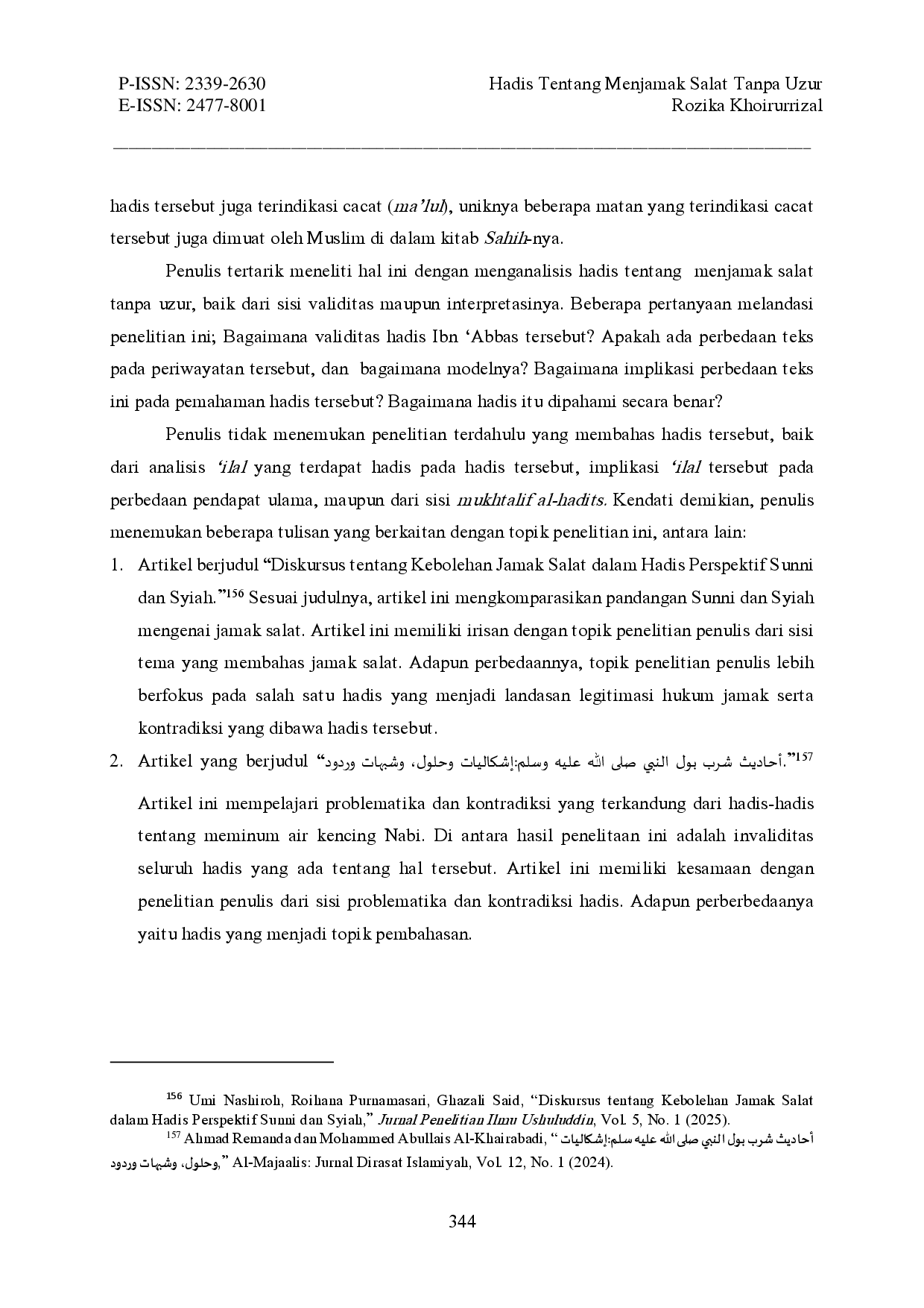 STDIISSTDIIS Hadis jamak salat tanpa uzur tersebut juga diriwayatkan dengan beberapa model matan periwayatan, dan memberikan ragam interpretasi dari kalangan ulamaHadis jamak salat tanpa uzur tersebut juga diriwayatkan dengan beberapa model matan periwayatan, dan memberikan ragam interpretasi dari kalangan ulama