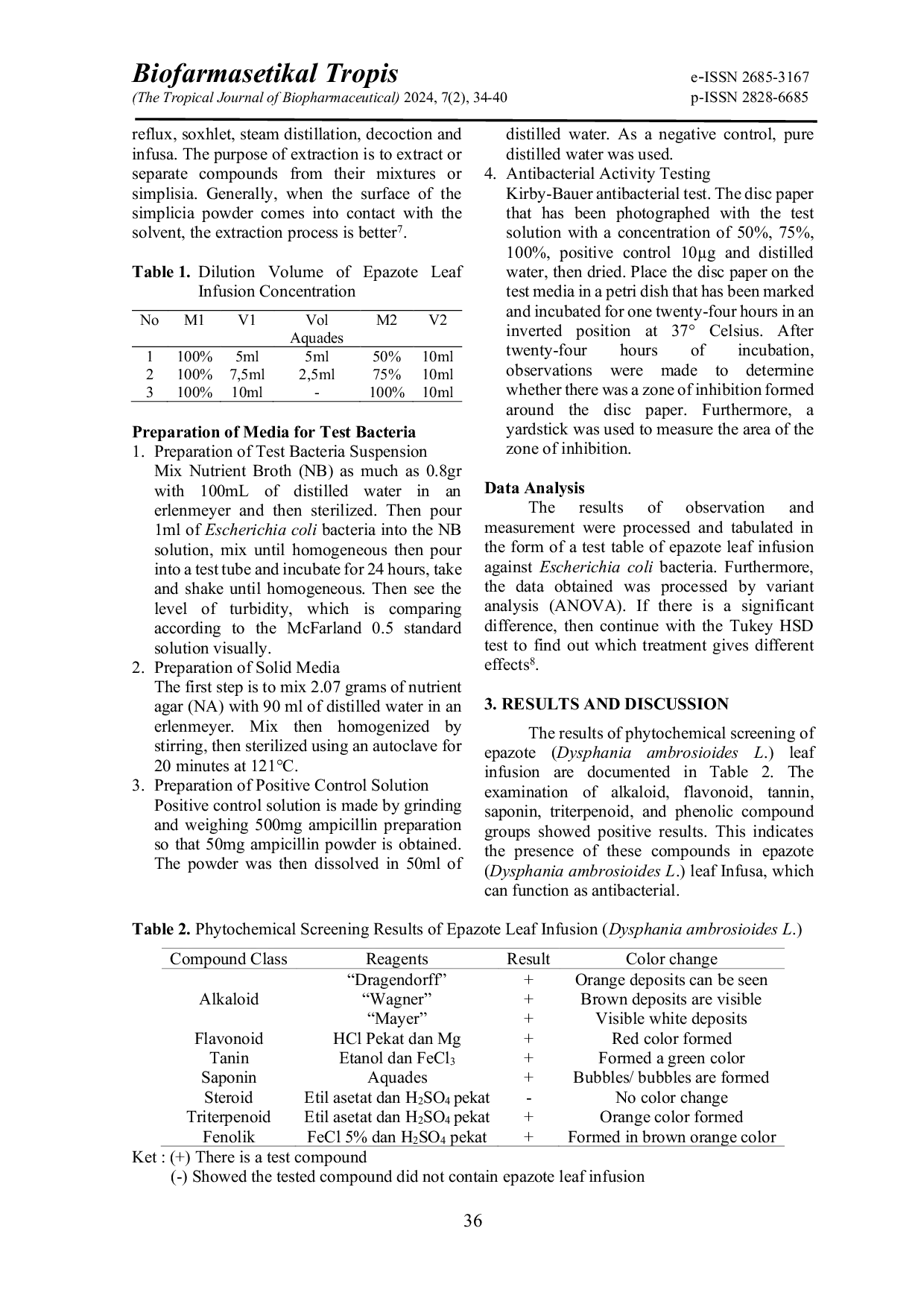 FMIPAUKITFMIPAUKIT Average at a concentration of 50% = 14.04 mm, 75% = 16.92 mm, 100% = 17.94 mm, which means that there is antibacterial activity of epazote leaf infusionAverage at a concentration of 50% = 14.04 mm, 75% = 16.92 mm, 100% = 17.94 mm, which means that there is antibacterial activity of epazote leaf infusion