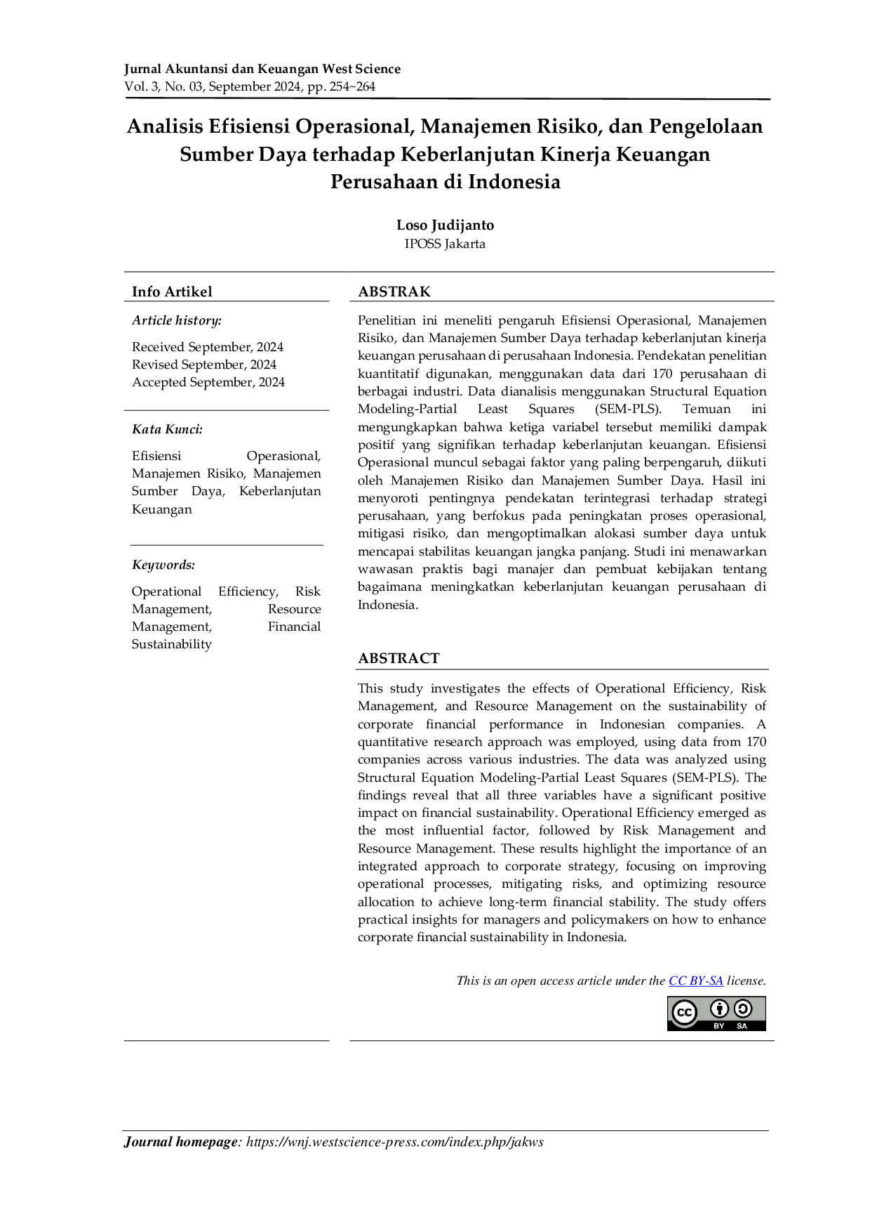WESTSCIENCESWESTSCIENCES Efisiensi Operasional muncul sebagai faktor yang paling berpengaruh, diikuti oleh Manajemen Risiko dan Manajemen Sumber Daya. Hasil ini menyoroti pentingnyaEfisiensi Operasional muncul sebagai faktor yang paling berpengaruh, diikuti oleh Manajemen Risiko dan Manajemen Sumber Daya. Hasil ini menyoroti pentingnya