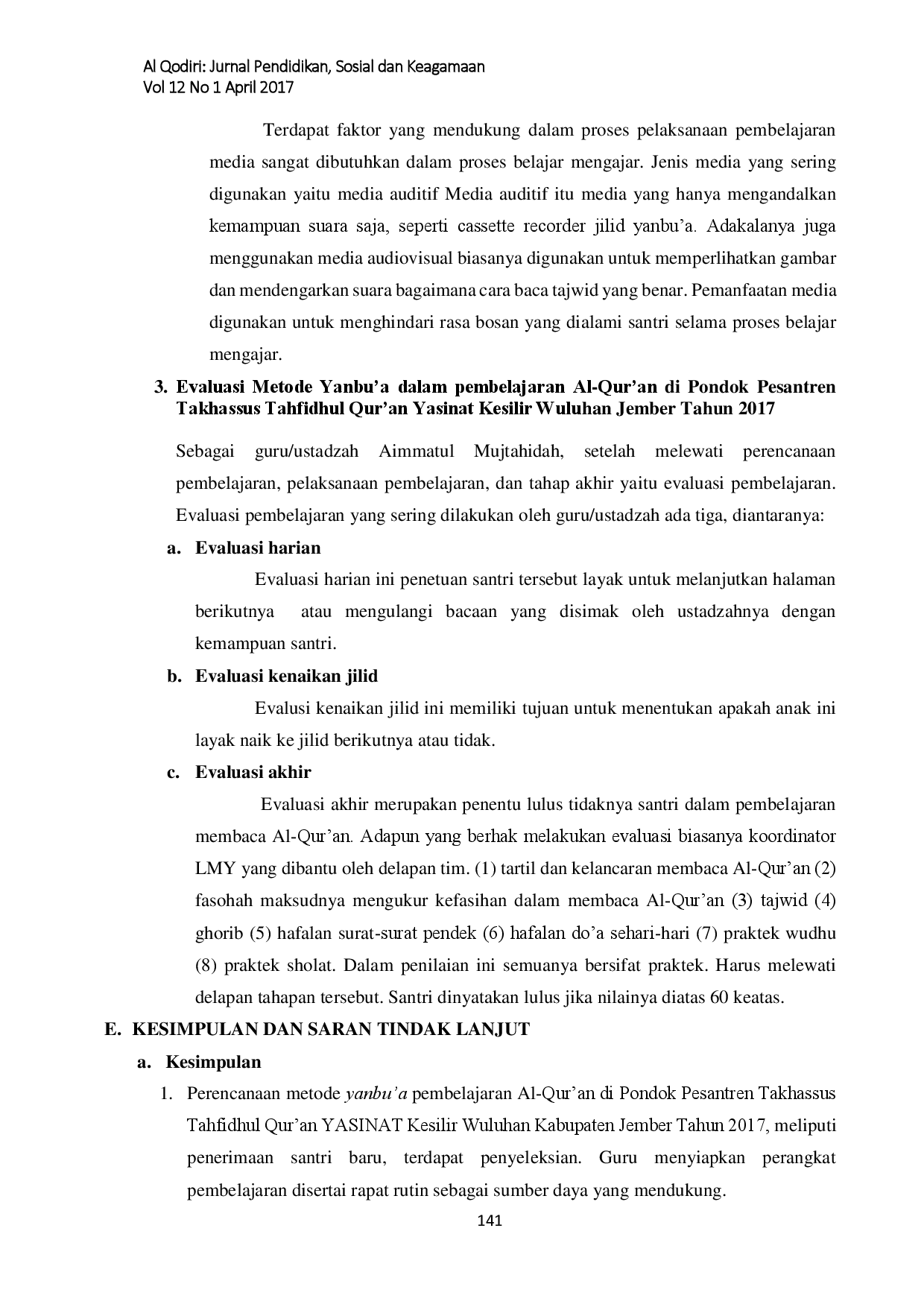 JOURNAL STIEHIDAYATULLAHJOURNAL STIEHIDAYATULLAH Di Indonesia, masih banyak masyarakat yang tidak mampu membaca Al-Quran secara benar. Metode Yanbua memberikan kontribusi signifikan dengan membantu pesertaDi Indonesia, masih banyak masyarakat yang tidak mampu membaca Al-Quran secara benar. Metode Yanbua memberikan kontribusi signifikan dengan membantu peserta