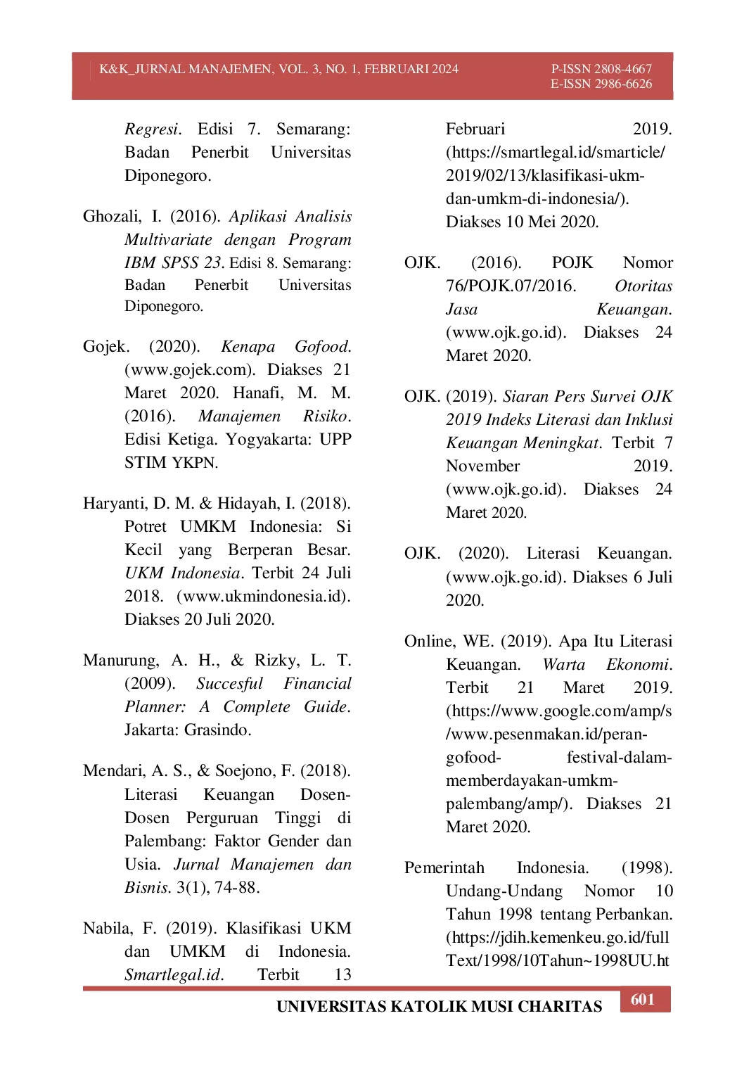 LLDIKTI4LLDIKTI4 Hasil penelitian menunjukkan bahwa literasi keuangan dan fintech baik secara parsial maupun simultan memiliki dampak positif dan signicfikan terhadap kinerjaHasil penelitian menunjukkan bahwa literasi keuangan dan fintech baik secara parsial maupun simultan memiliki dampak positif dan signicfikan terhadap kinerja
