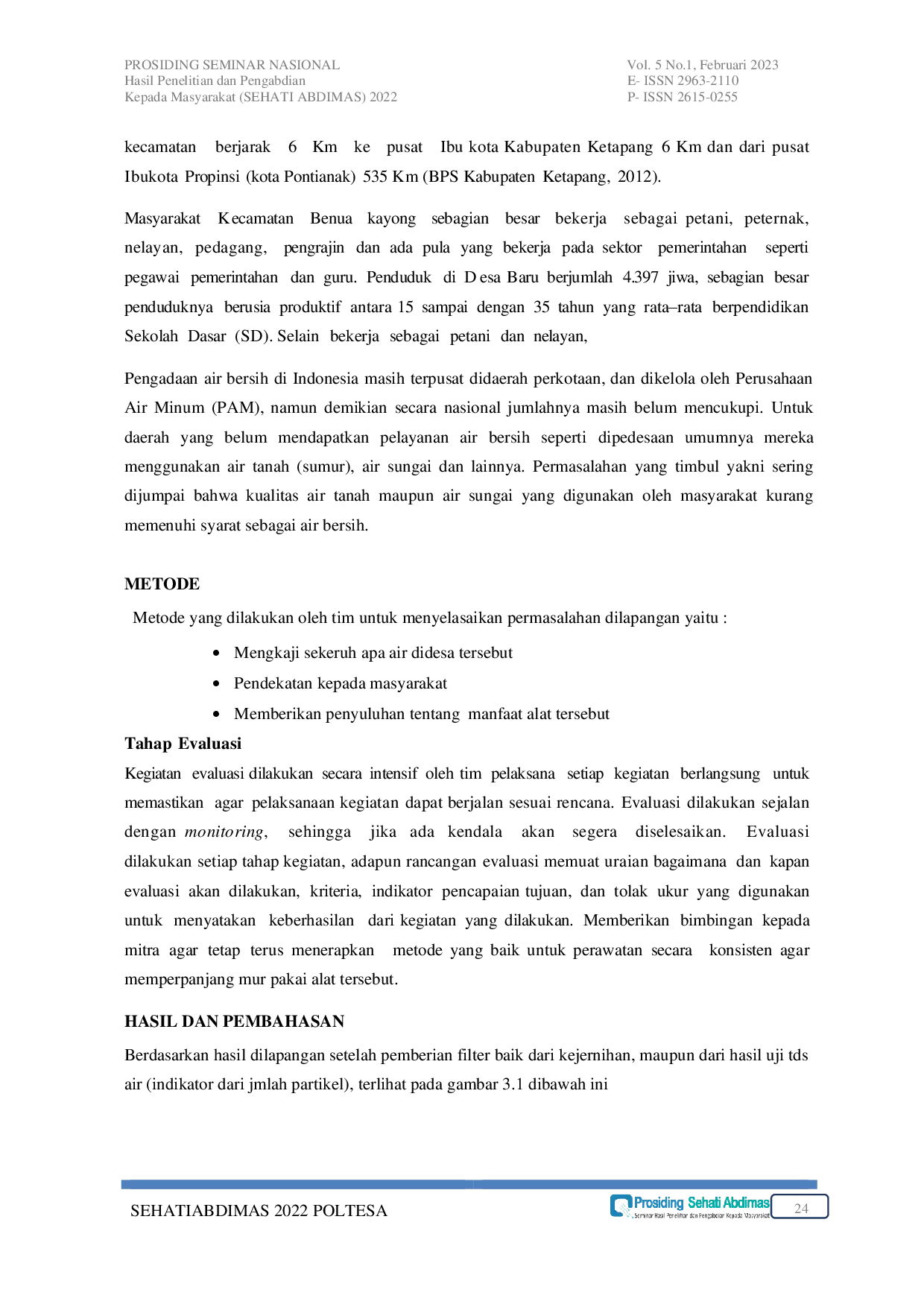 POLTESAPOLTESA Oleh karena itu jika kebutuhan air tersebut belum tercukupi maka dapat memberikan dampak terhadap kesehatan masyarakat. Khususnya Desa Suka Baru KecamatanOleh karena itu jika kebutuhan air tersebut belum tercukupi maka dapat memberikan dampak terhadap kesehatan masyarakat. Khususnya Desa Suka Baru Kecamatan
