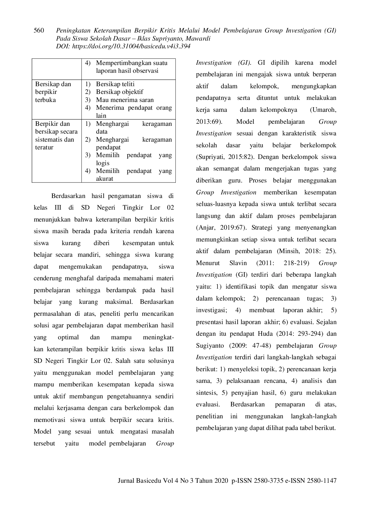 JBASICJBASIC Jadi model Group Investigation yang diterapkan sesuai langkah-langkah yang tepat dapat meningkatkan keterampilan berpikir kritis siswa. Berdasarkan hasilJadi model Group Investigation yang diterapkan sesuai langkah-langkah yang tepat dapat meningkatkan keterampilan berpikir kritis siswa. Berdasarkan hasil