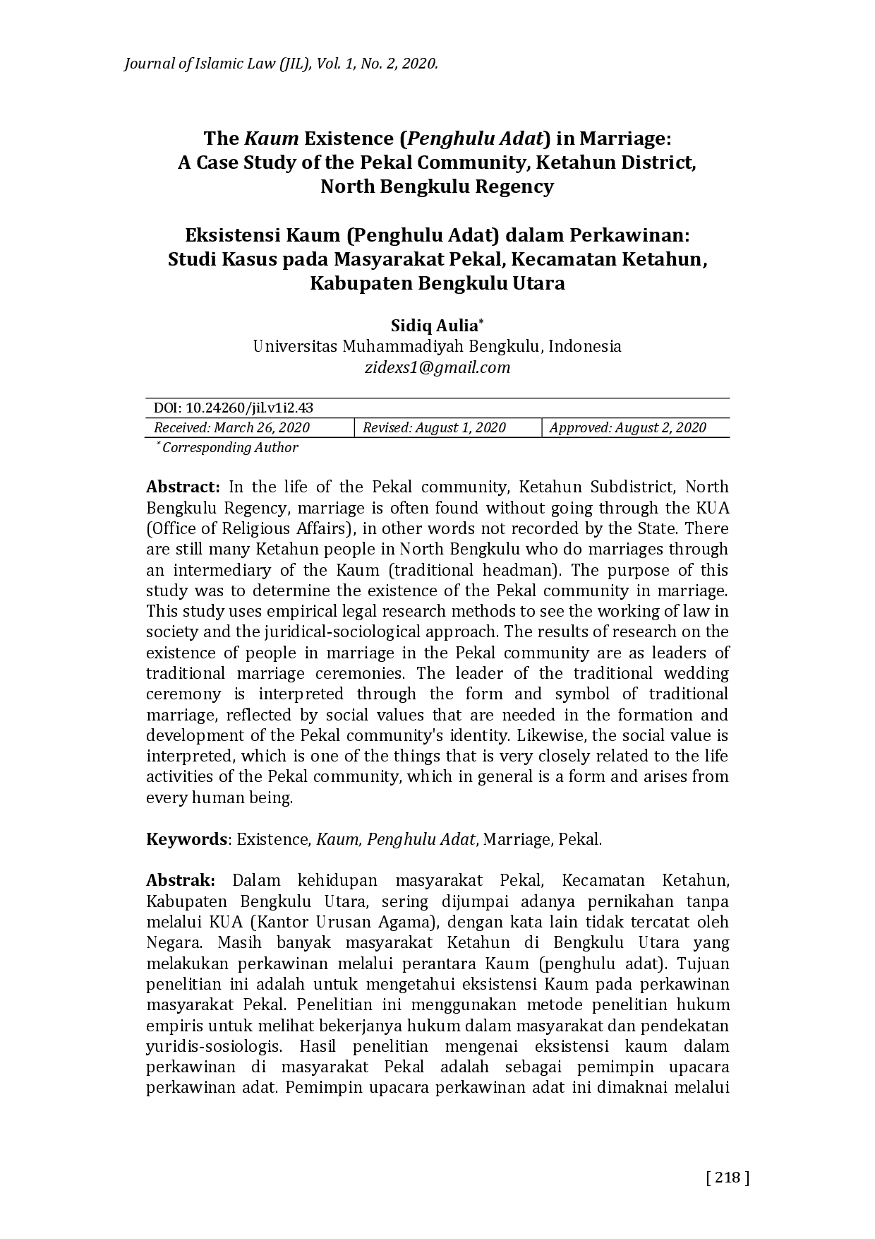 IAINPTKIAINPTK Dalam kehidupan masyarakat Pekal, Kecamatan Ketahun, Kabupaten Bengkulu Utara, sering dijumpai adanya pernikahan tanpa melalui KUA (Kantor Urusan Agama),Dalam kehidupan masyarakat Pekal, Kecamatan Ketahun, Kabupaten Bengkulu Utara, sering dijumpai adanya pernikahan tanpa melalui KUA (Kantor Urusan Agama),