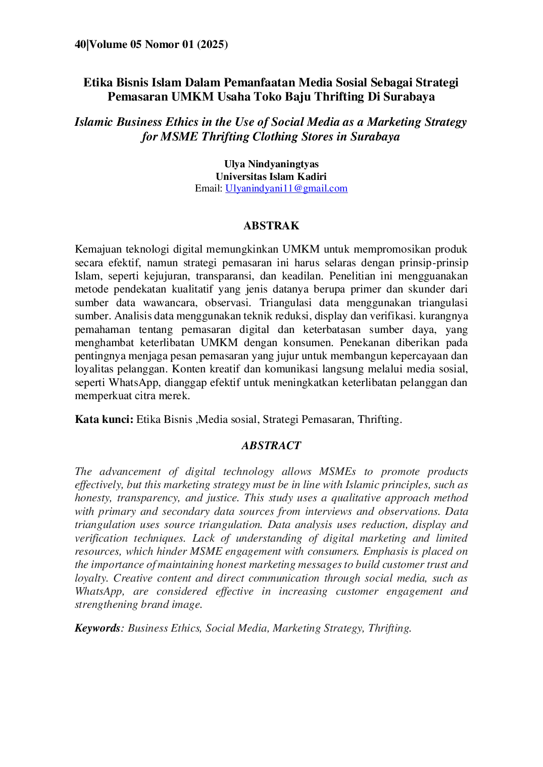 ALFITHRAHALFITHRAH Kemajuan teknologi digital memungkinkan UMKM untuk mempromosikan produk secara efektif, namun strategi pemasaran ini harus selaras dengan prinsip‑prinsipKemajuan teknologi digital memungkinkan UMKM untuk mempromosikan produk secara efektif, namun strategi pemasaran ini harus selaras dengan prinsip‑prinsip