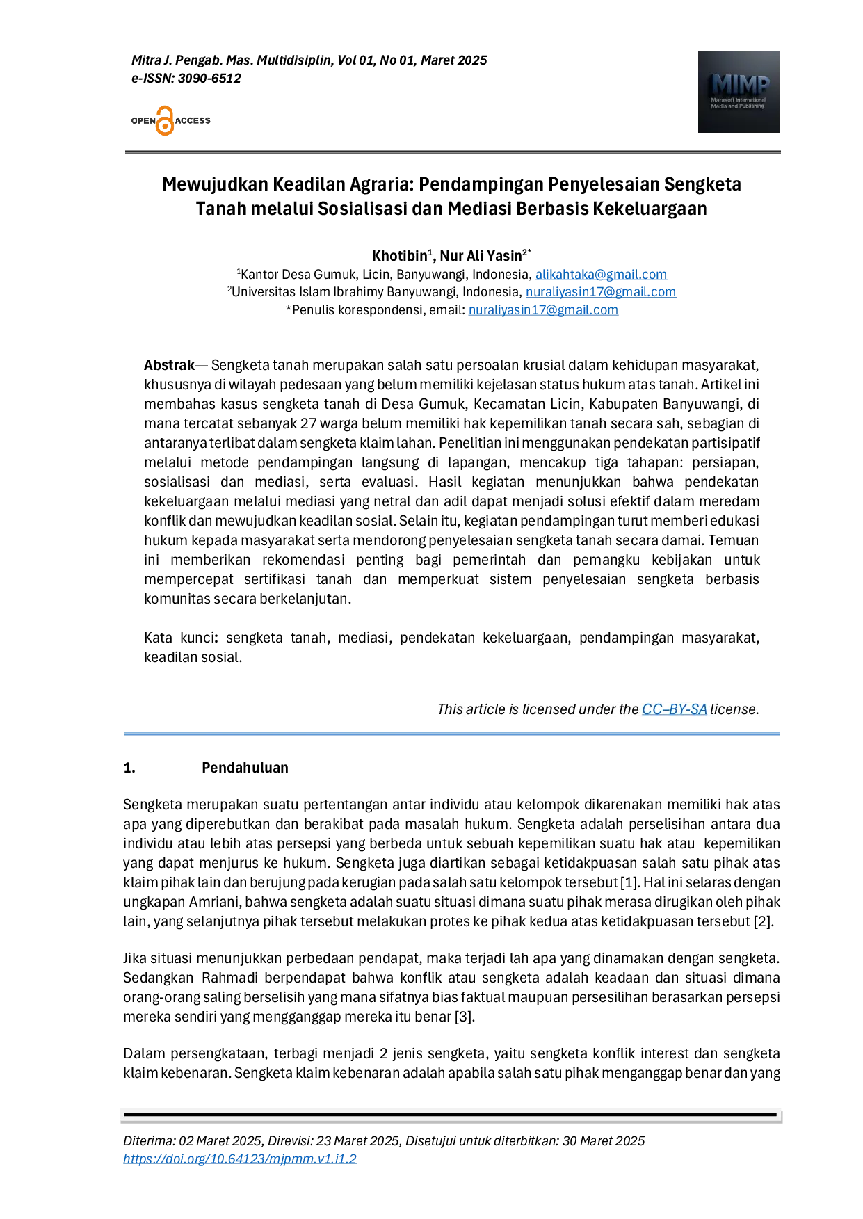 MARASOFIPUBLISHINGMARASOFIPUBLISHING Hasil kegiatan menunjukkan bahwa pendekatan kekeluargaan melalui mediasi yang netral dan adil dapat menjadi solusi efektif dalam meredam konflik dan mewujudkanHasil kegiatan menunjukkan bahwa pendekatan kekeluargaan melalui mediasi yang netral dan adil dapat menjadi solusi efektif dalam meredam konflik dan mewujudkan
