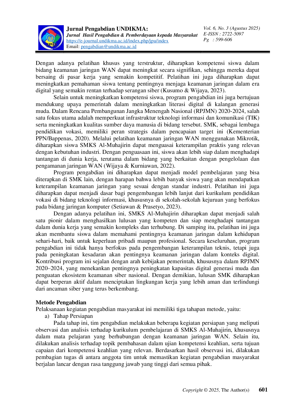 UNDIKMAUNDIKMA Indikator evaluasi utama menunjukkan tingkat pencapaian di atas 85%, dengan kepuasan mitra secara keseluruhan melebihi 90%. Program ini tidak hanya memperkuatIndikator evaluasi utama menunjukkan tingkat pencapaian di atas 85%, dengan kepuasan mitra secara keseluruhan melebihi 90%. Program ini tidak hanya memperkuat